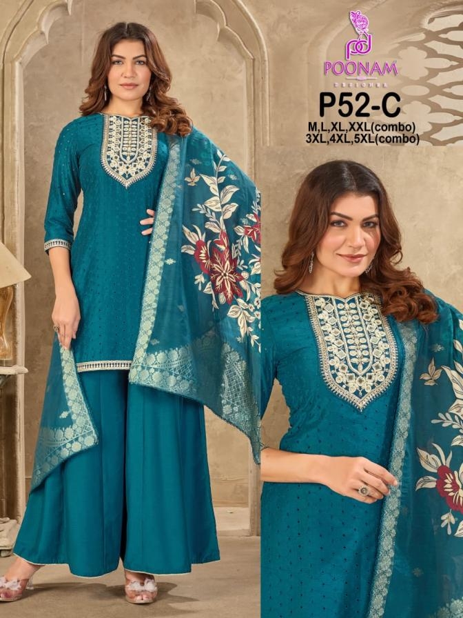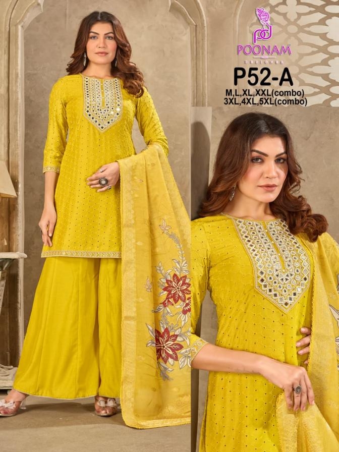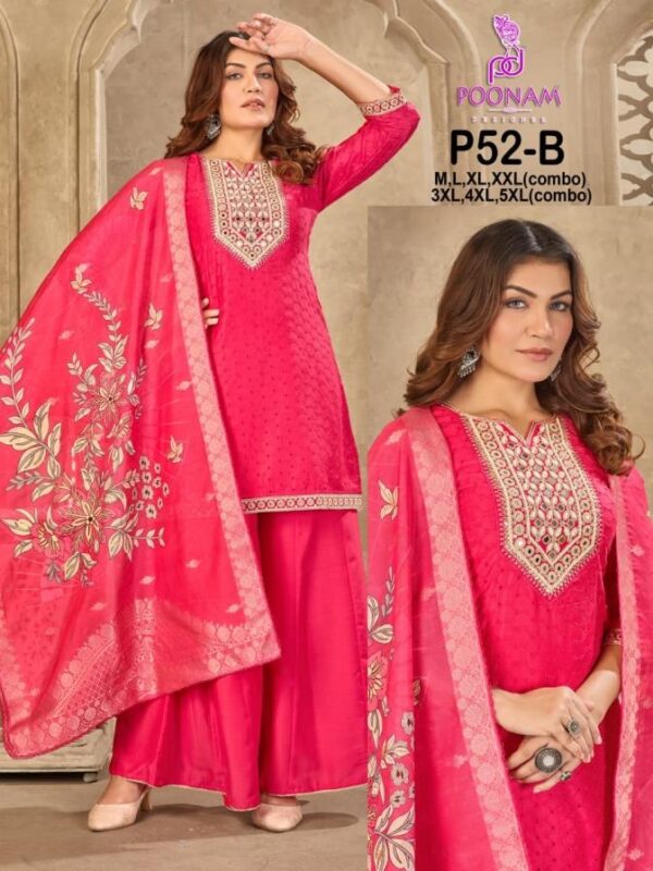 | Name : | Poonam Designer P52 Readymade Muslin Chikan Combo Set Big Size Suit In Wholesale Surat | |