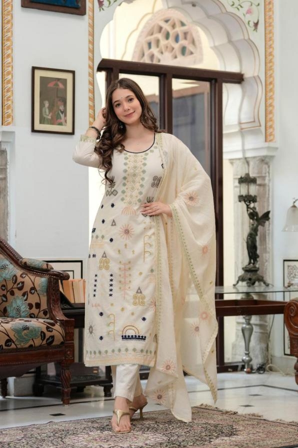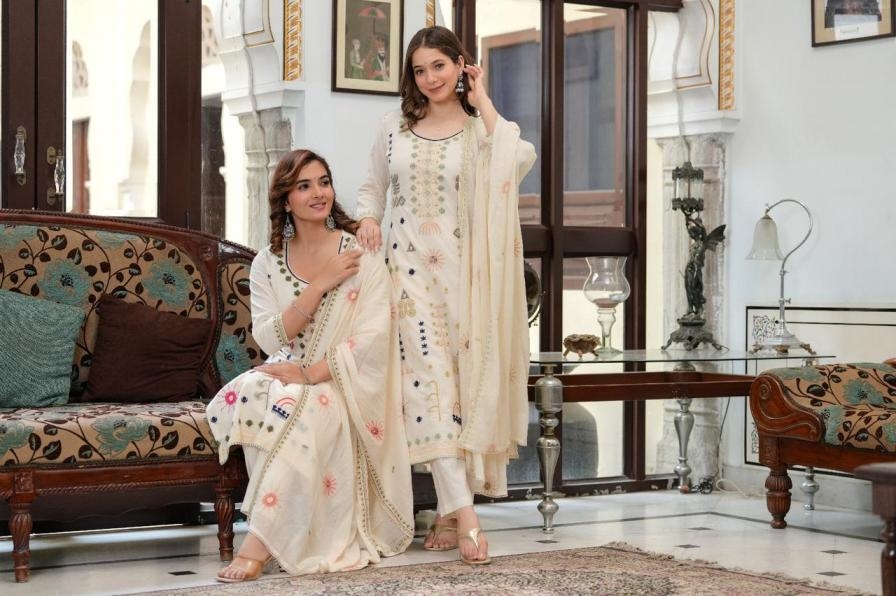 We have dress materials for women and boutique owners who love custom tailoring, which are a perfect choice. You can Explore beautiful printed, embroidered, and designer unstitched suits that can be stitched to your size and style. Our dress materials come with fabric for top, bottom, and dupatta which can is perfect for gifting Purpose.