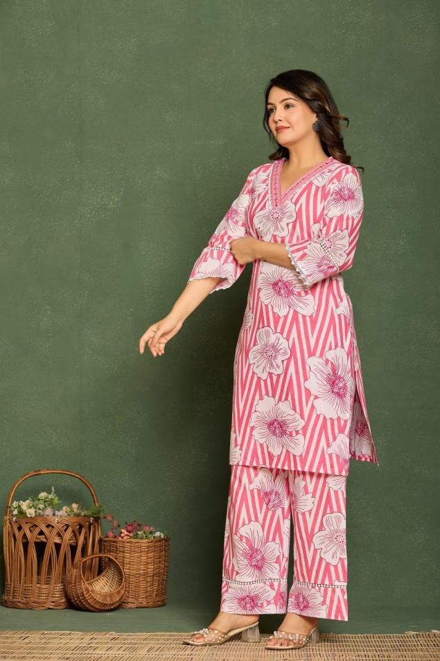 pr modern pattern cotton fully stitch pretty combo co-ord sets in wholesale surat