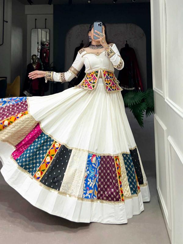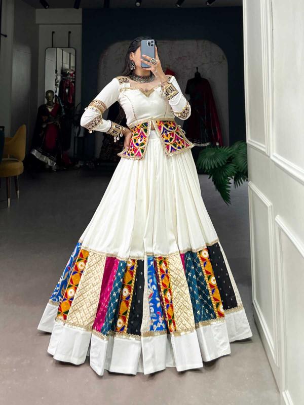 Navratri Collection 2024🌷 Gamthi Craft with a Modern Design Touch 🧿 NNK1704WHT Lehenga (Stitched) Blouse (Stitched) Package Contain : Lehenga, Blouse, Drawstring With Zip Weight : 2.200 kg Rate : 2550/- |