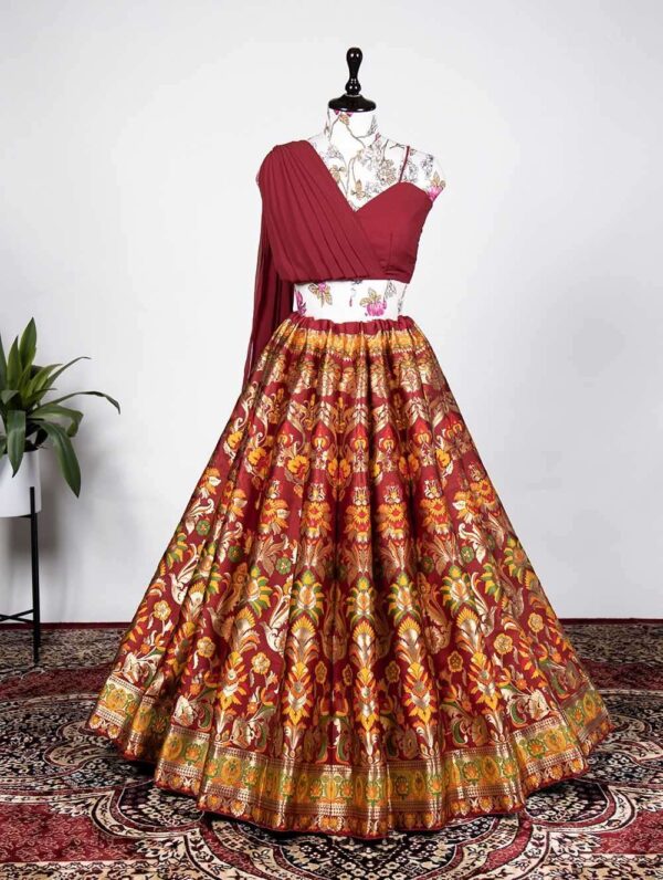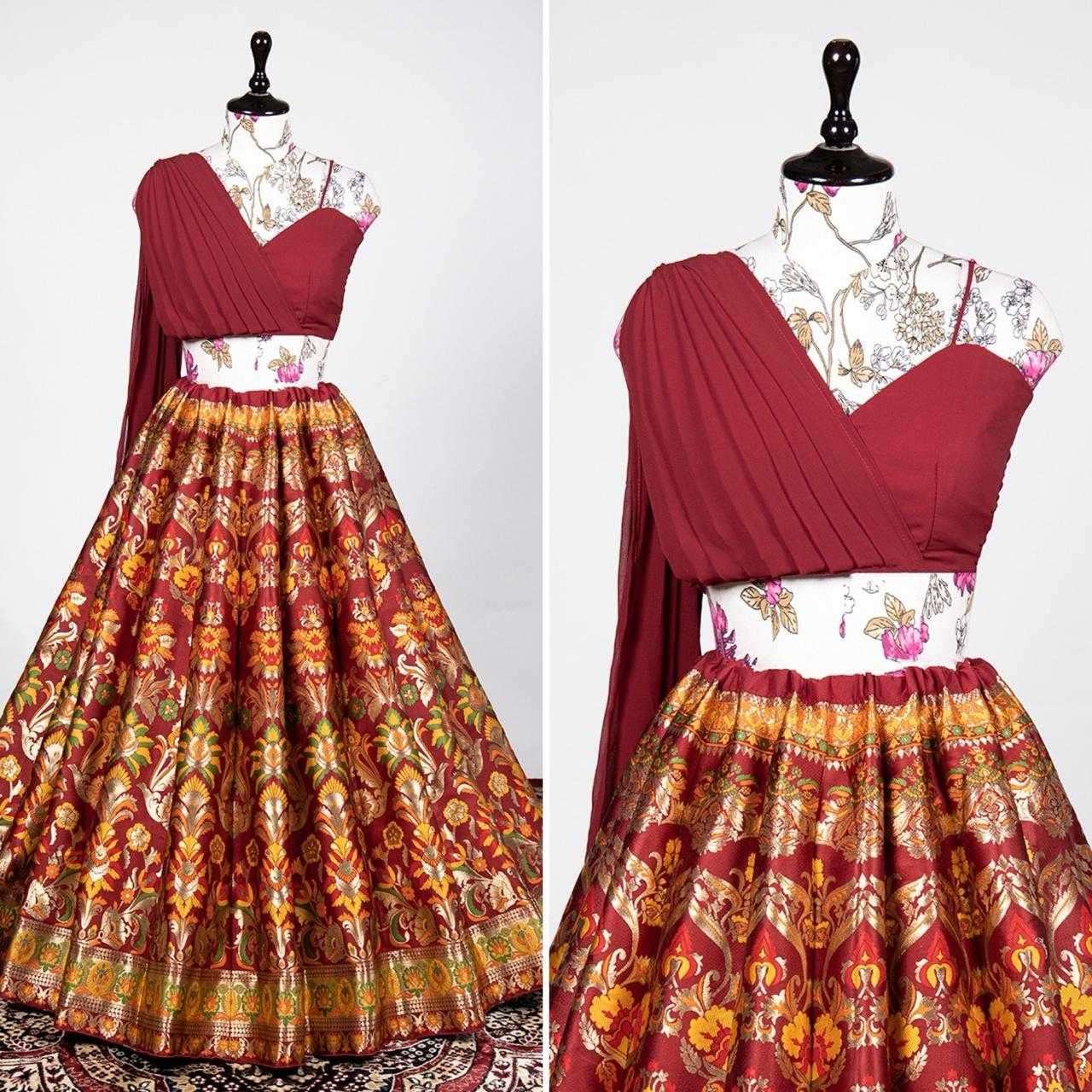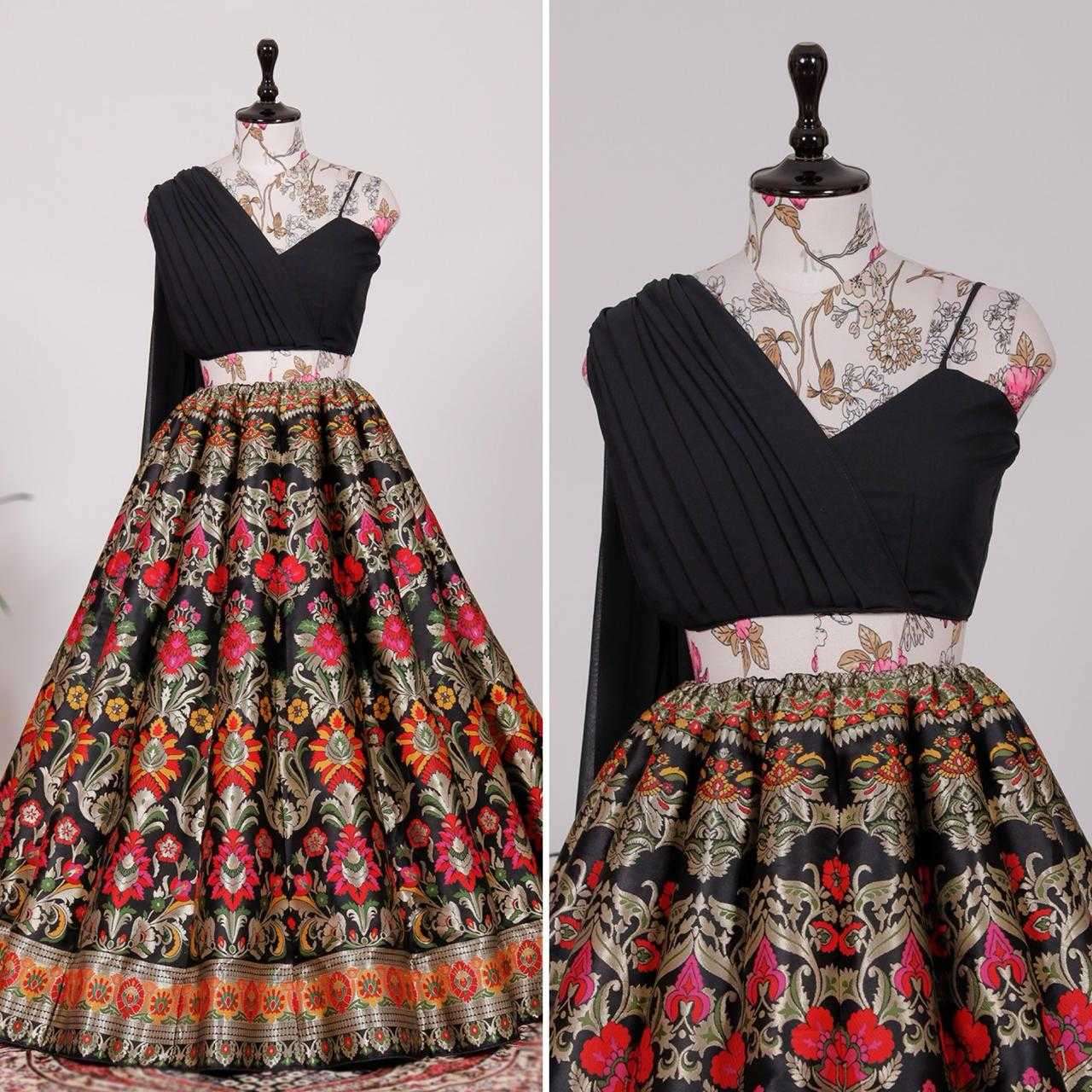 buy pr nnk2018blk Banarasi silk Zari Weaving Work Lehenga latest catalogue 2025