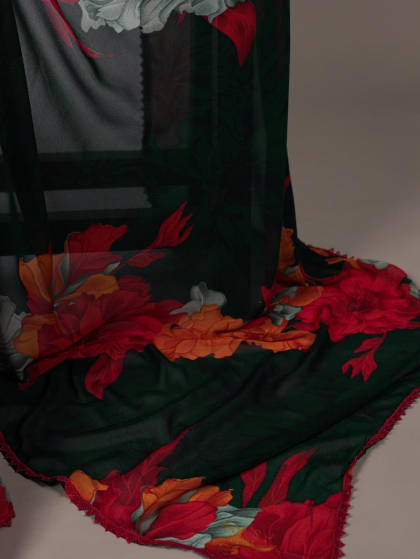 Saree work : Floral Printed With Lace Border
