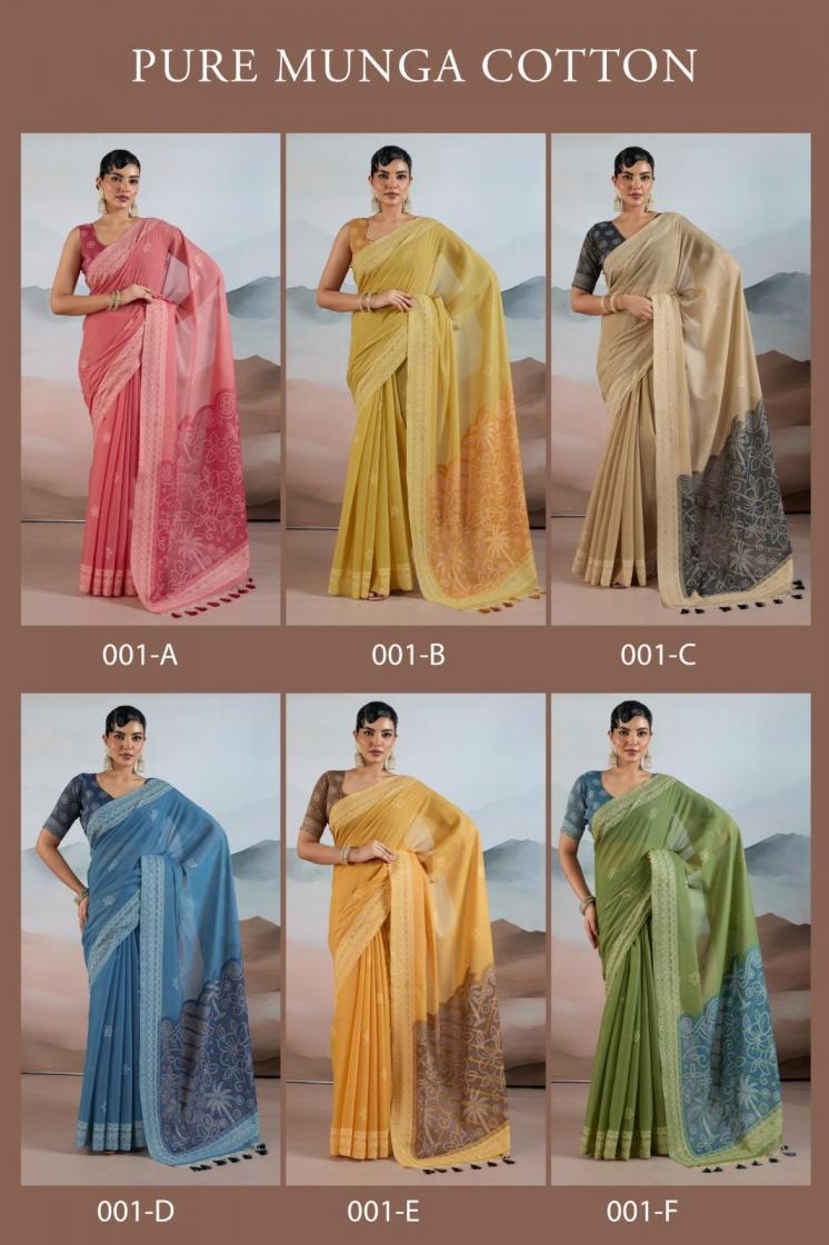 rajtex pure munga cotton series 001A to 001F viscose cotton handloom weaving saree in wholesale surat