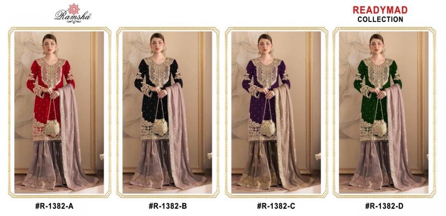 ramsha r 1382 A to D nx georgette readymade pakistani plazzo suit in wholeslae surat