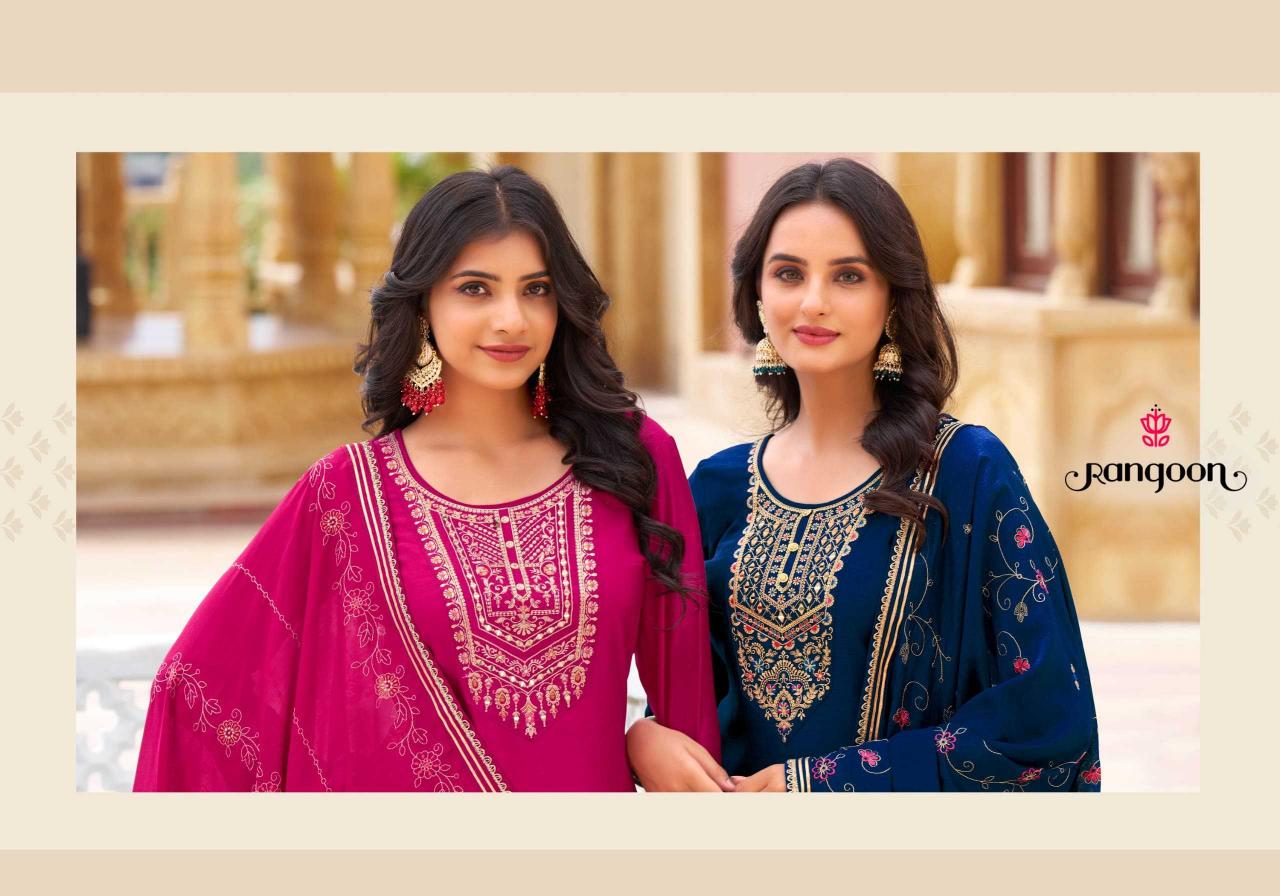 buy Rangoon Vaani Series 5631 To 5636 Embroidered Kurti, Bottom & Dupatta Collection In Wholesale latest catalogue 2025