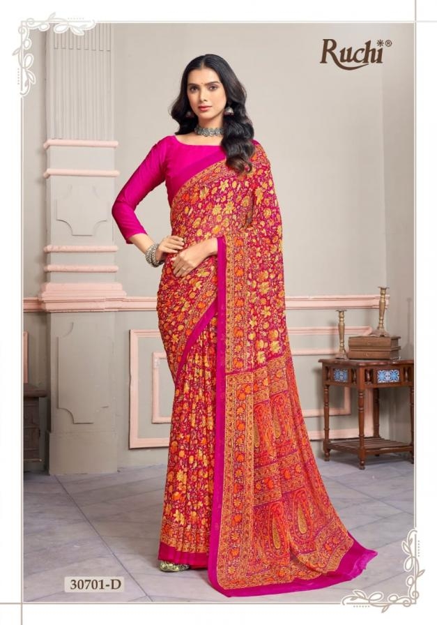 | Name : | Ruchi Star Chiffon Vol 219 Series 30701 A To 30703 D Chiffon Daily Wear Saree In Wholesale Surat | |