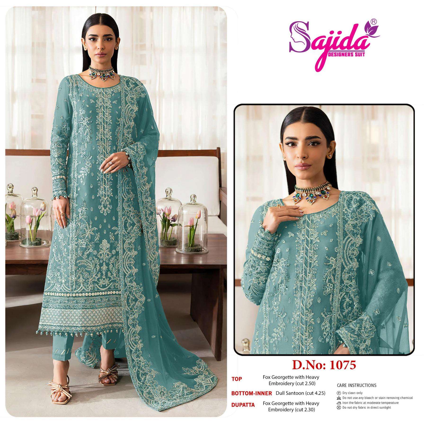 • Full Name : Sajida Designer 1075 Georgette Unstitch Pakistani Suit In Wholesale Surat