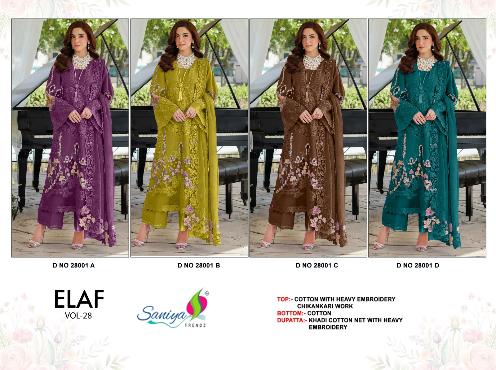 Upgrade your ethnic wardrobe with the elegant Saniya Elaf Vol 28 Cotton Chikankari Worked Pakistani Suits Collection for Women, a perfect blend of traditional craftsmanship and modern style. This beautifully designed printed kurta set with dupatta features vibrant colors, intricate ethnic motifs, and premium-quality fabric that offers both comfort and style. Ideal for festivals, weddings, parties, casual outings, and traditional occasions, this stunning outfit enhances your graceful look effortlessly.