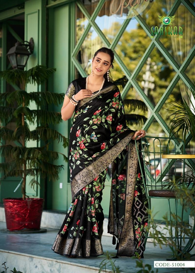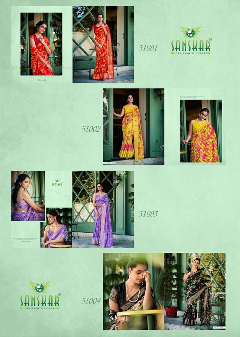 sanskar tex aanu series 51001 to 51008 prints hit design dola jari lining sarees in wholesale surat