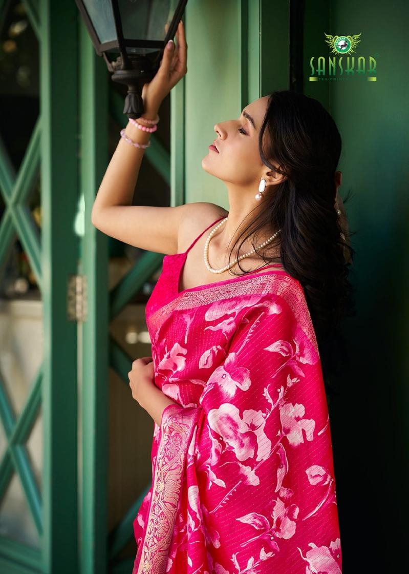 buy sanskar tex aanu series 51001 to 51008 prints hit design dola jari lining sarees in wholesale surat latest catalogue 2025