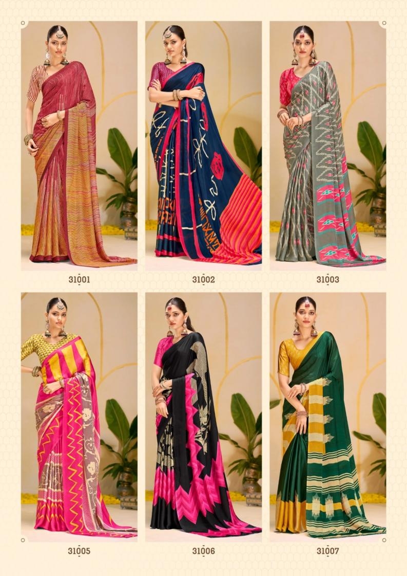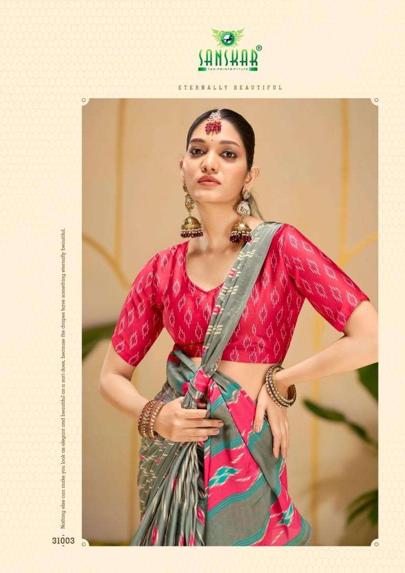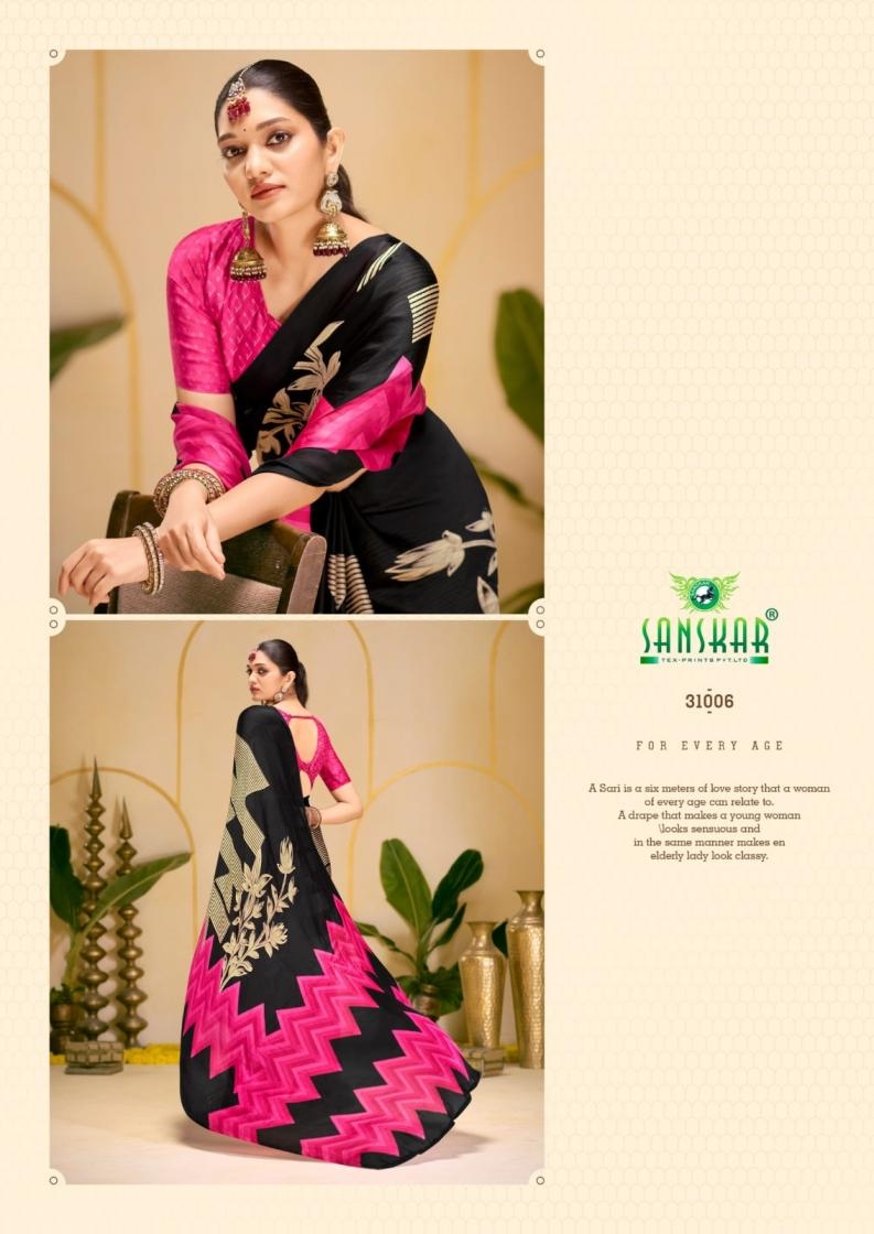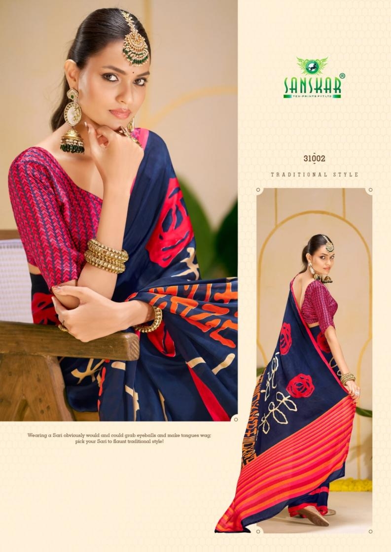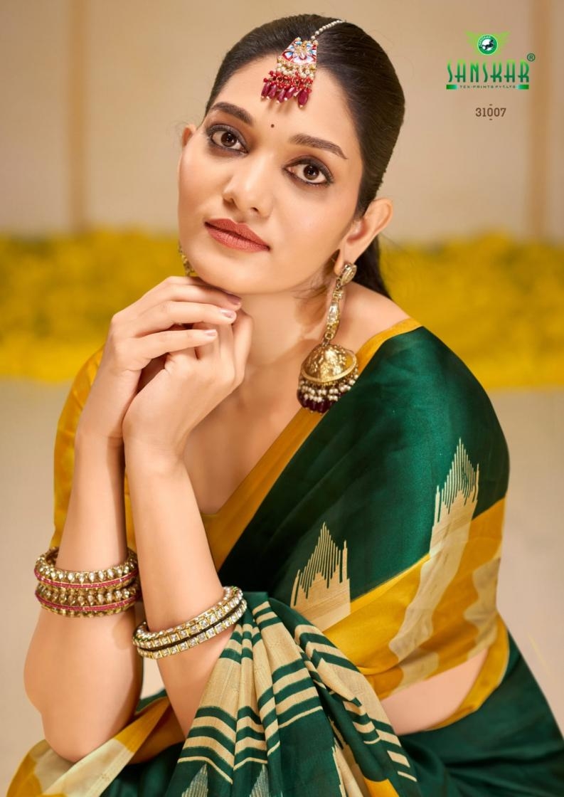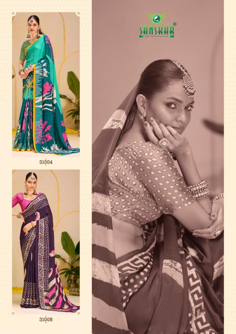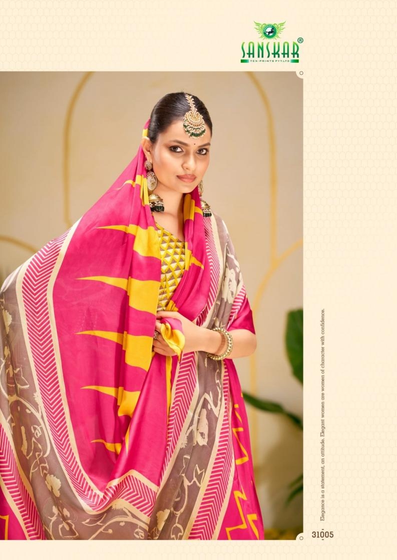 | Name : | Sanskar Tex Print Antara Series 31001 To 31008 Hit Design Etheriyan Silk Sarees In Wholesale Surat | |