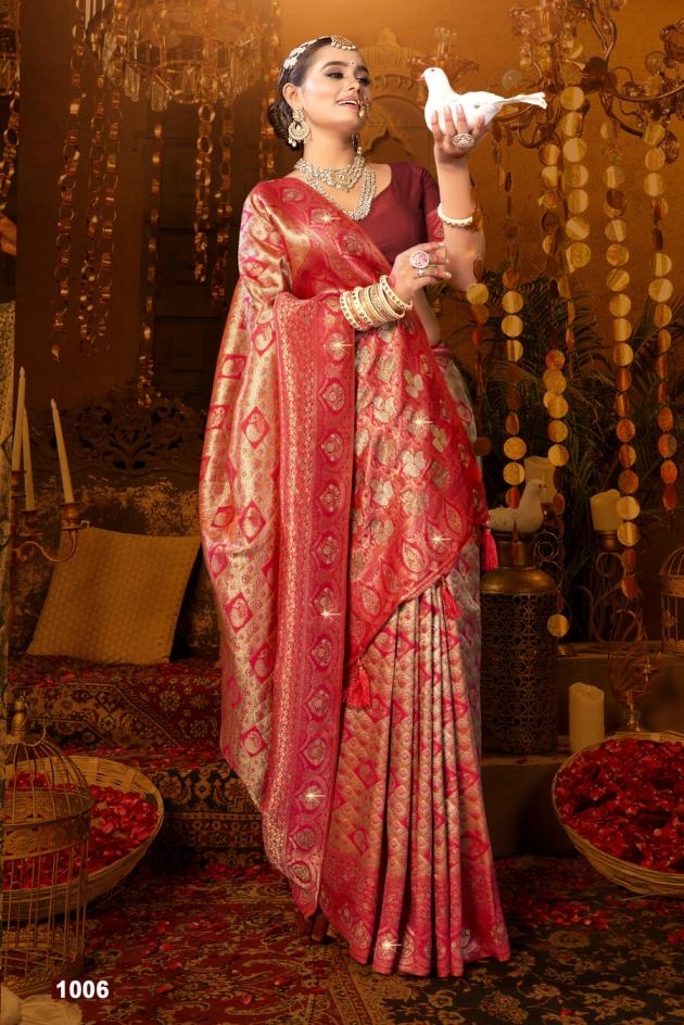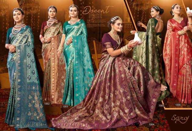• Full Name : Saroj Kalpraag Saroski Vol.2 Series 1001 To 1006 Tissue Silk Saree In Wholesale Surat