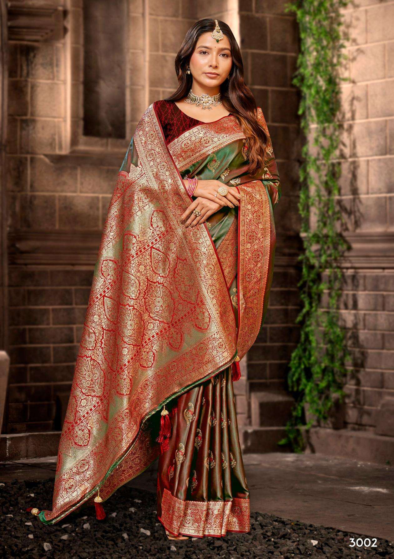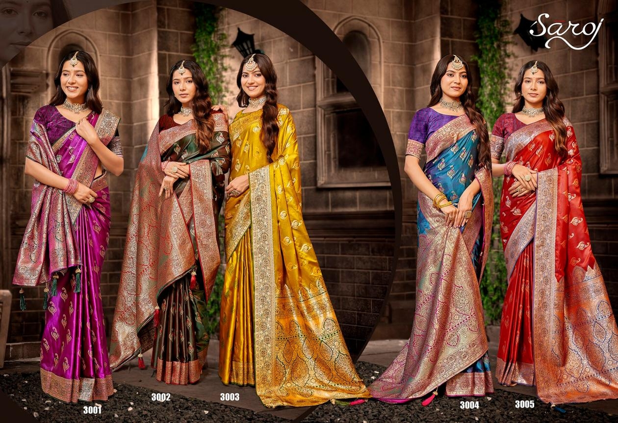buy Saroj Omkar satin saroski vol.3 series 3001 to 3005 satin silk saree in wholesale surat latest catalogue 2025