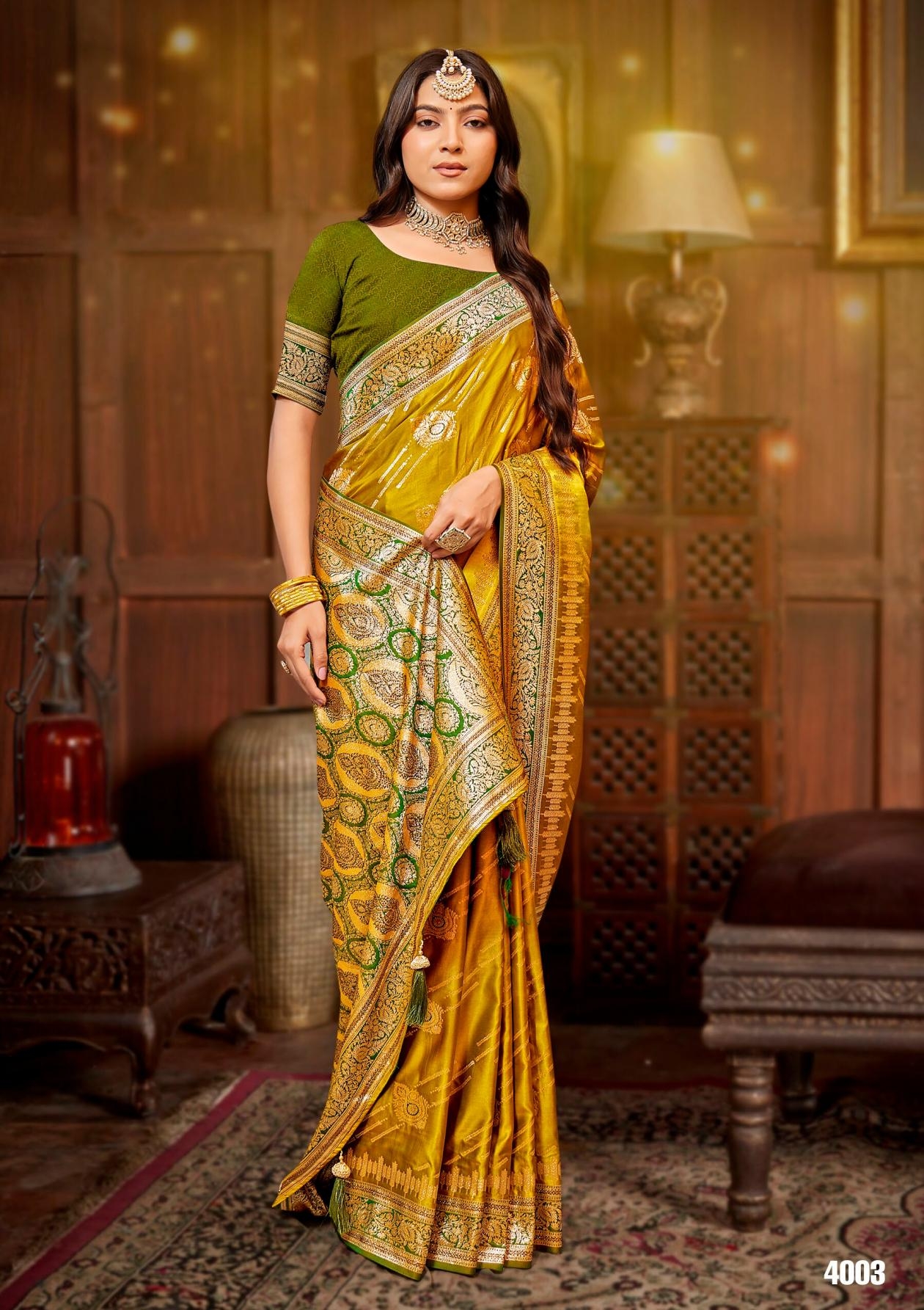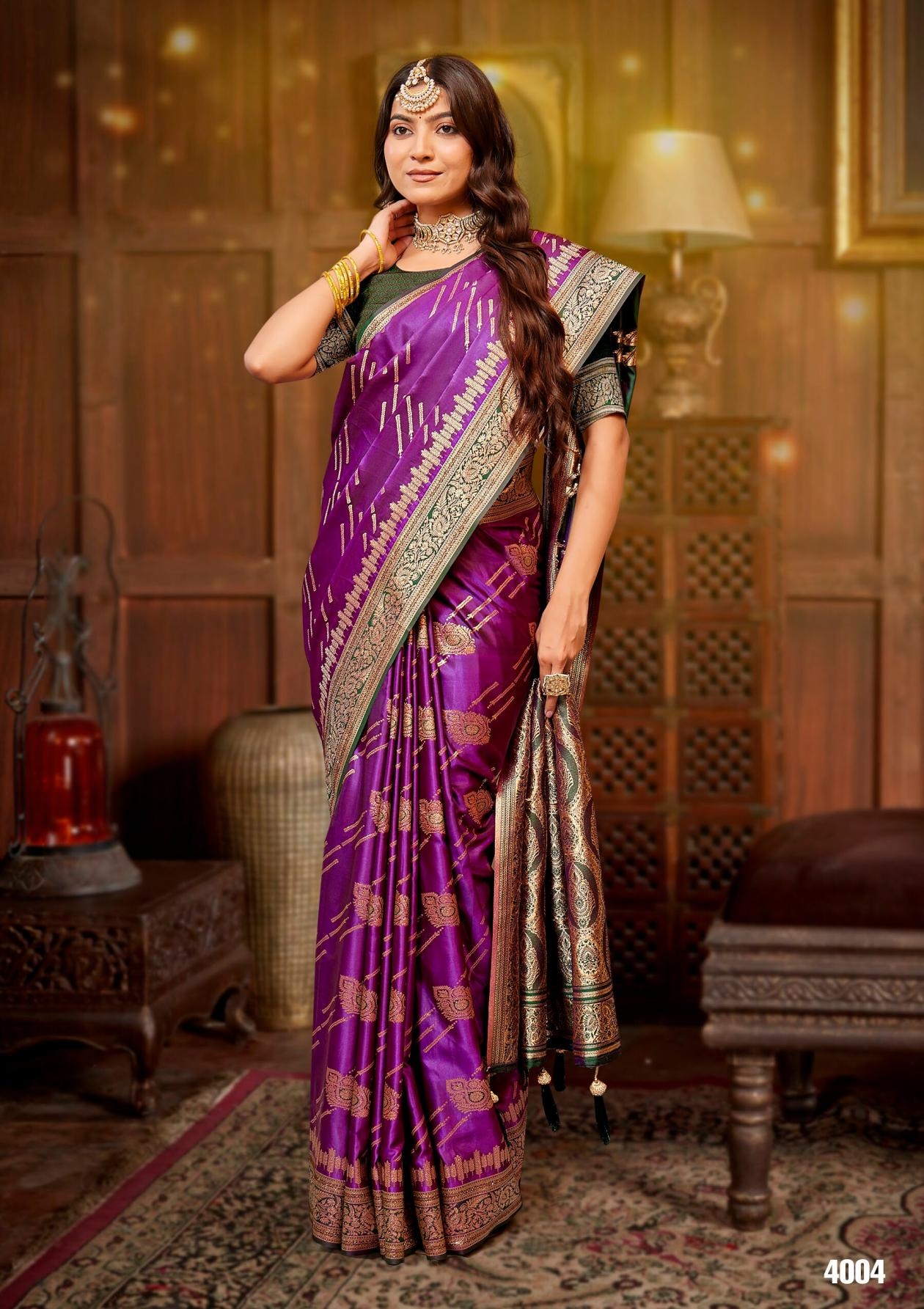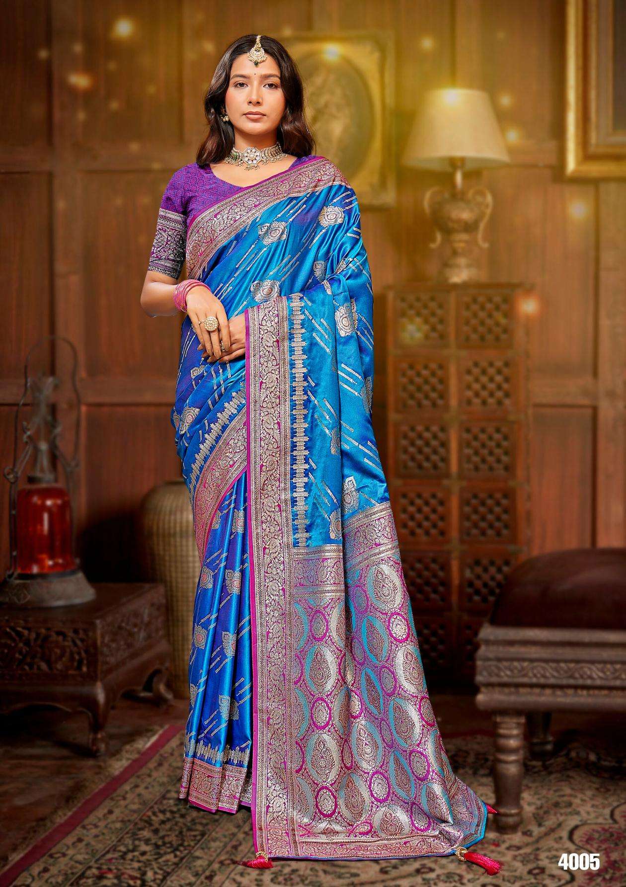 buy Saroj Omkar satin saroski vol.4 series 4001 to 4005 satin silk saree in wholesale surat latest catalogue 2025