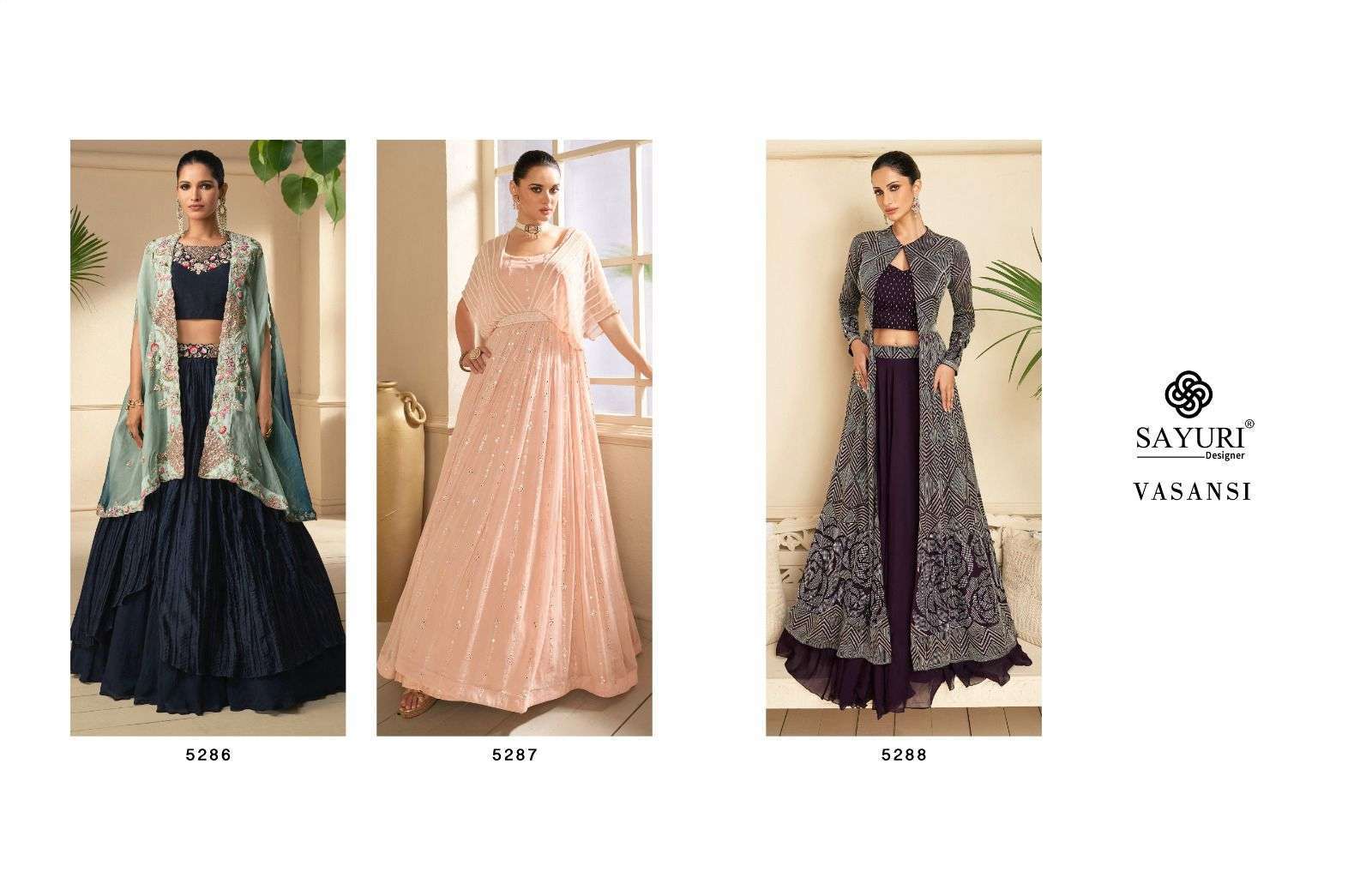 buy sayuri designer vasansi series 5286-5288 silk real georgette gown latest catalogue 2025