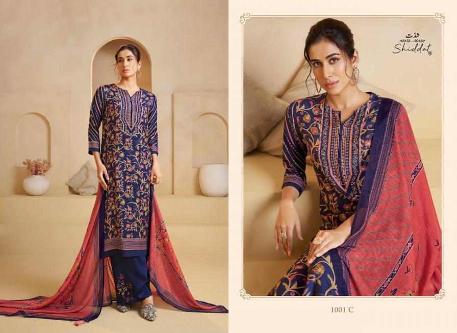shiddat irina series 1001A to 1001D amazing muslin salwar kameez in wholesale surat wholesale surat