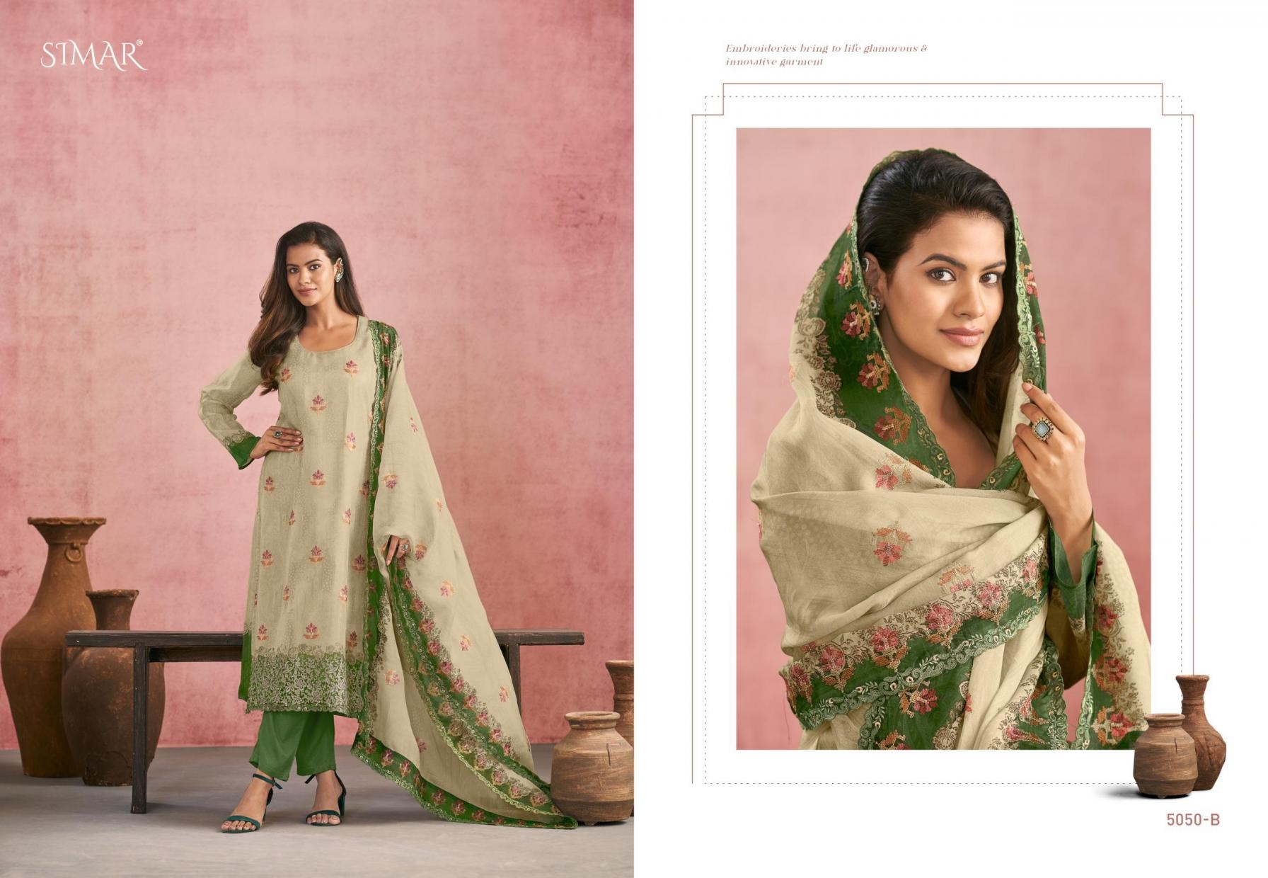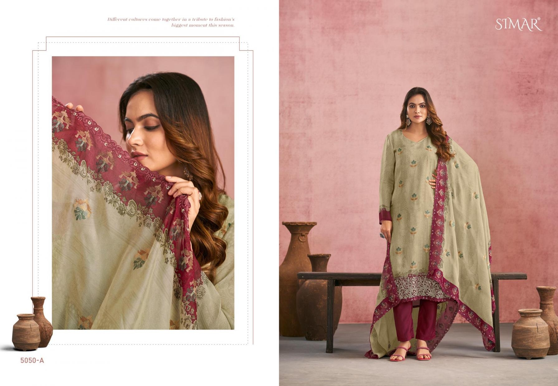 buy simar glossy launch morena series 5050A to 5050D casual viscose organza salwar kameez in wholesale surat latest catalogue 2025