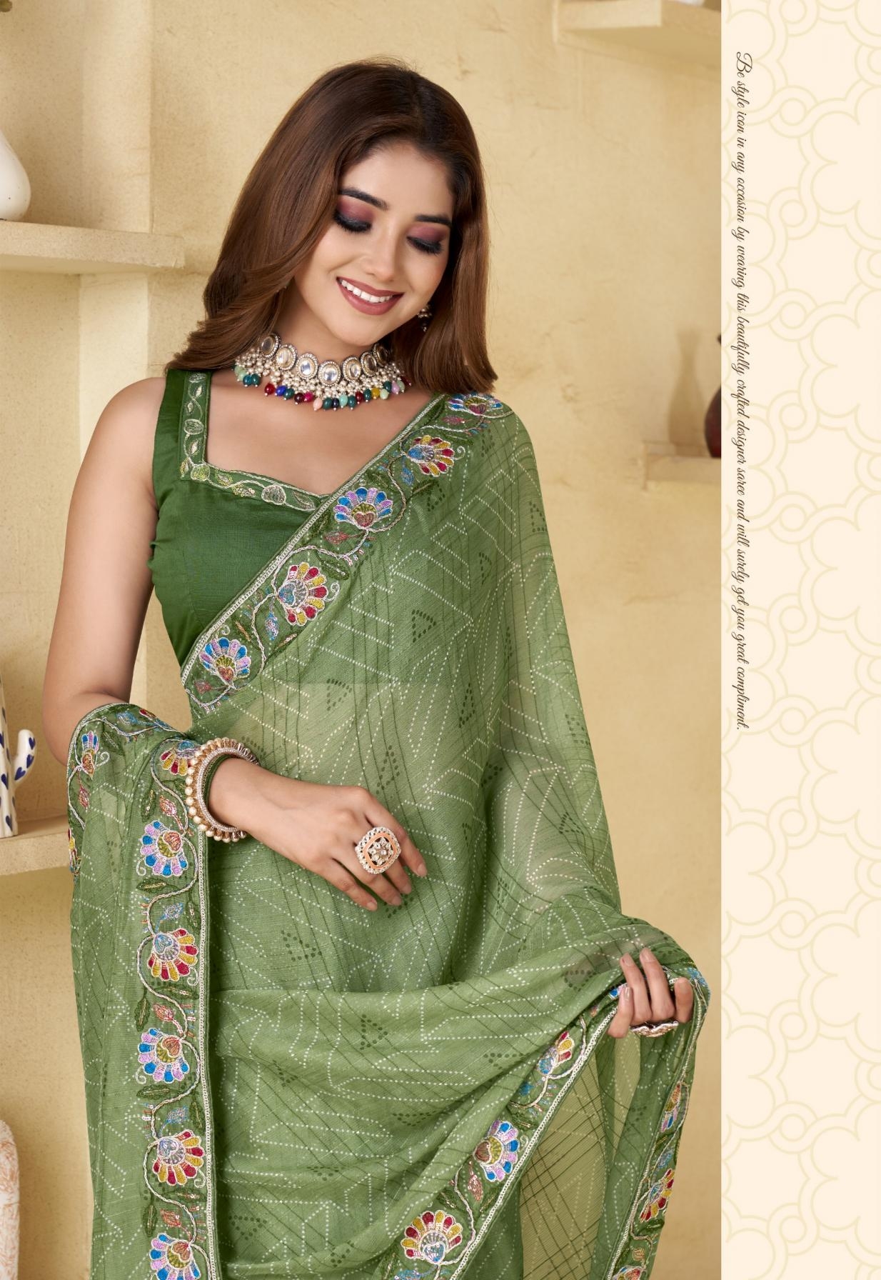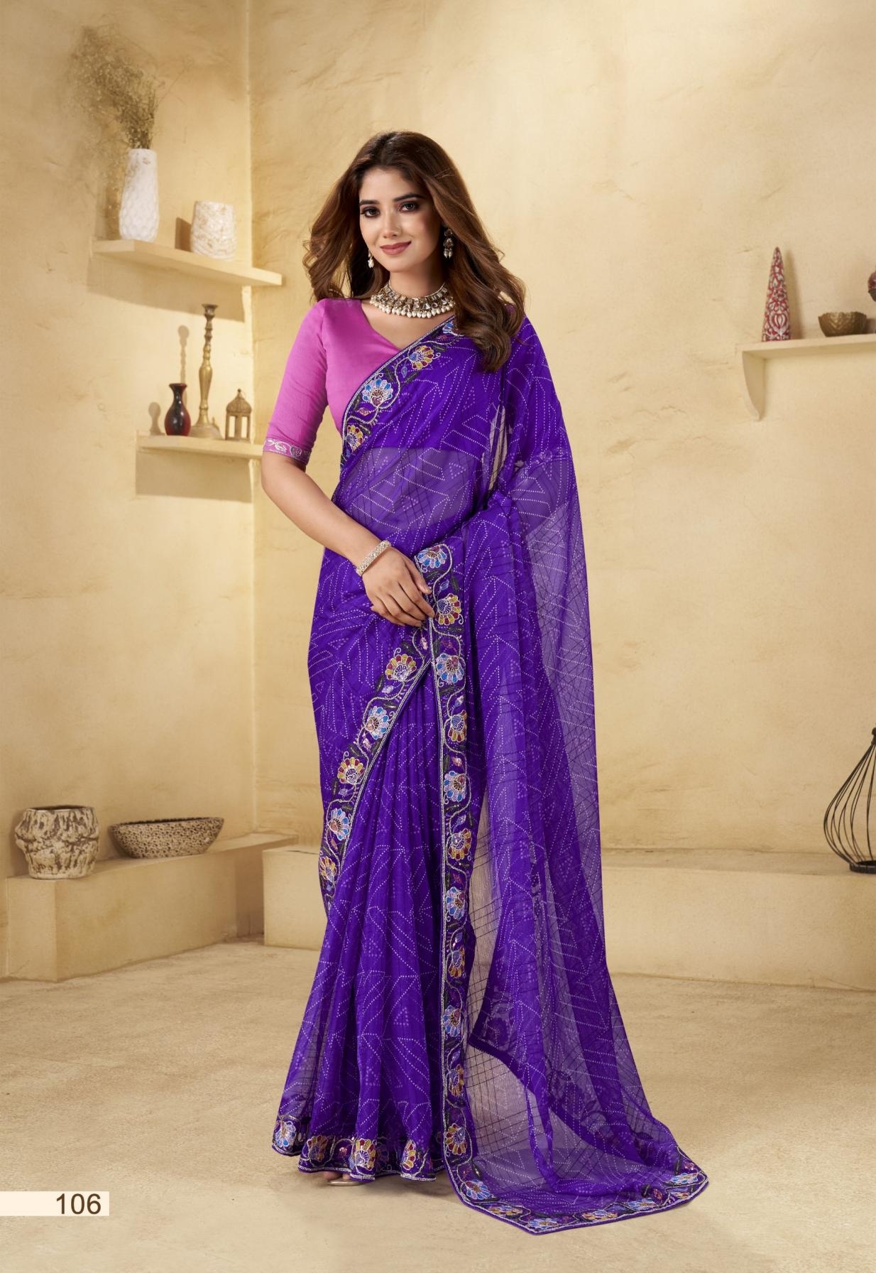 stavan tatva series 101 to 110 chiffon unique colour saree in wholesale surat