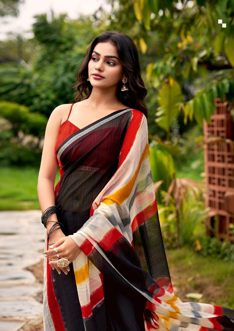 STAVAN VISHALA JUTH CHIFFON WEAVING BORDER WITH BRUSH PRINT & FOIL |
