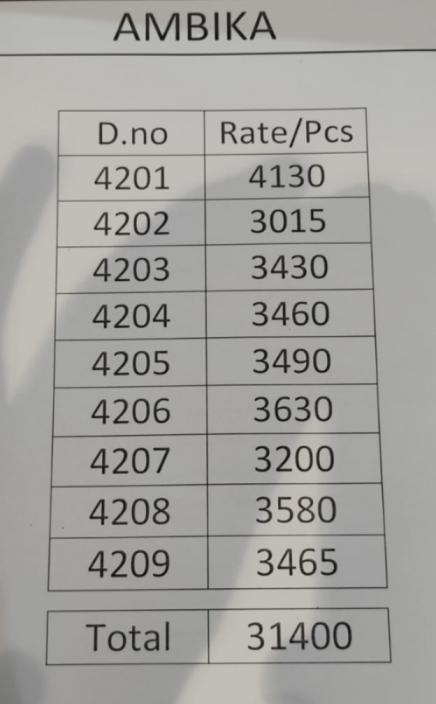 sulakshmi ambika series 4201-4209 fancy exclusive designer sarees in wholesale surat Buy New Latest Catalogue 2025 sulakshmi ambika series 4201-4209 fancy exclusive designer sarees in wholesale surat. Available in Singles and Bulk at Rehmat Boutique. Buy at Wholesale price at very reasonable rate. Specification :