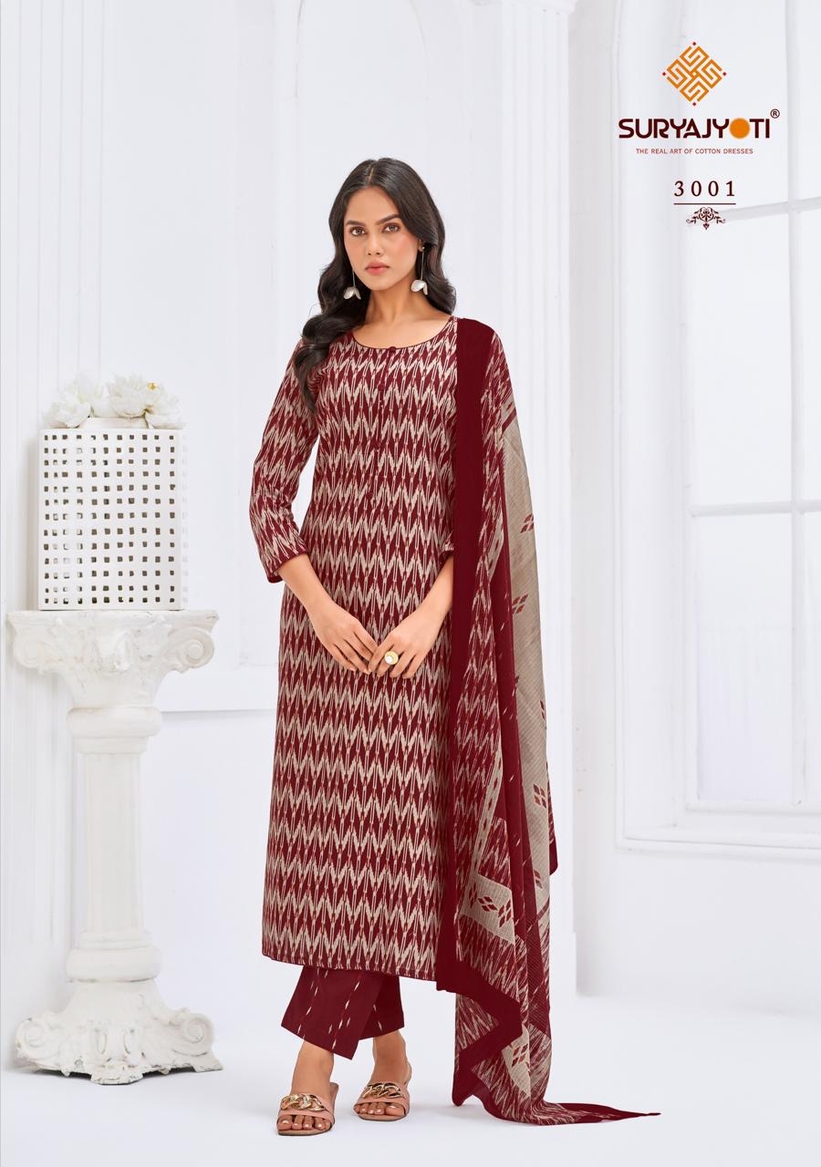 buy SuryaJyoti Paridhi Vol-03 series 3001 to 3010 Pure Cotton Printed salwar kameez in wholesale surat latest catalogue 2025