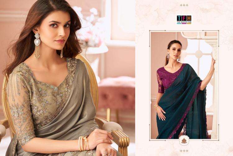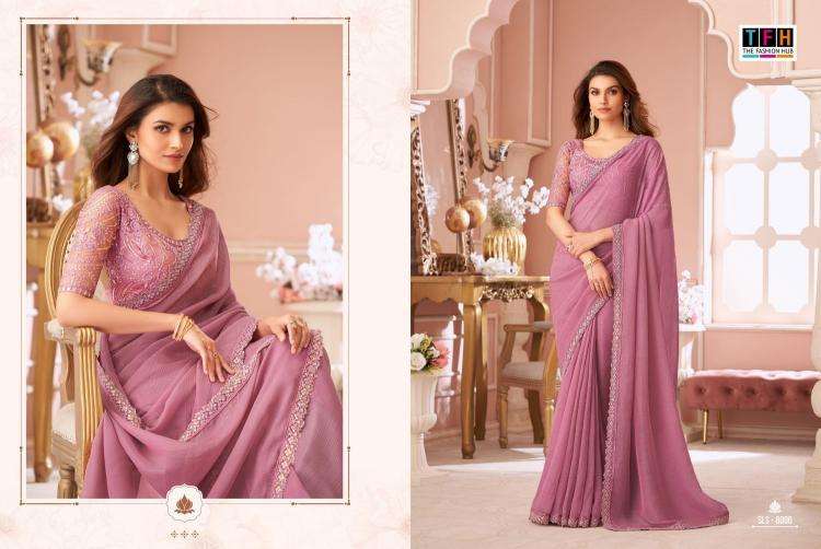 Step into the spotlight and make a statement in this exquisite party wear saree. From the luxurious fabric to the intricate embellishments, every detail is designed to elevate your elegance and grace. Brand Name : Tfh Series : 8001 to 8016 Price : List Attached+5%GST Fabric : Fabric List Attached 5% Gst Occasion : Party Wear,Fancy Wear |