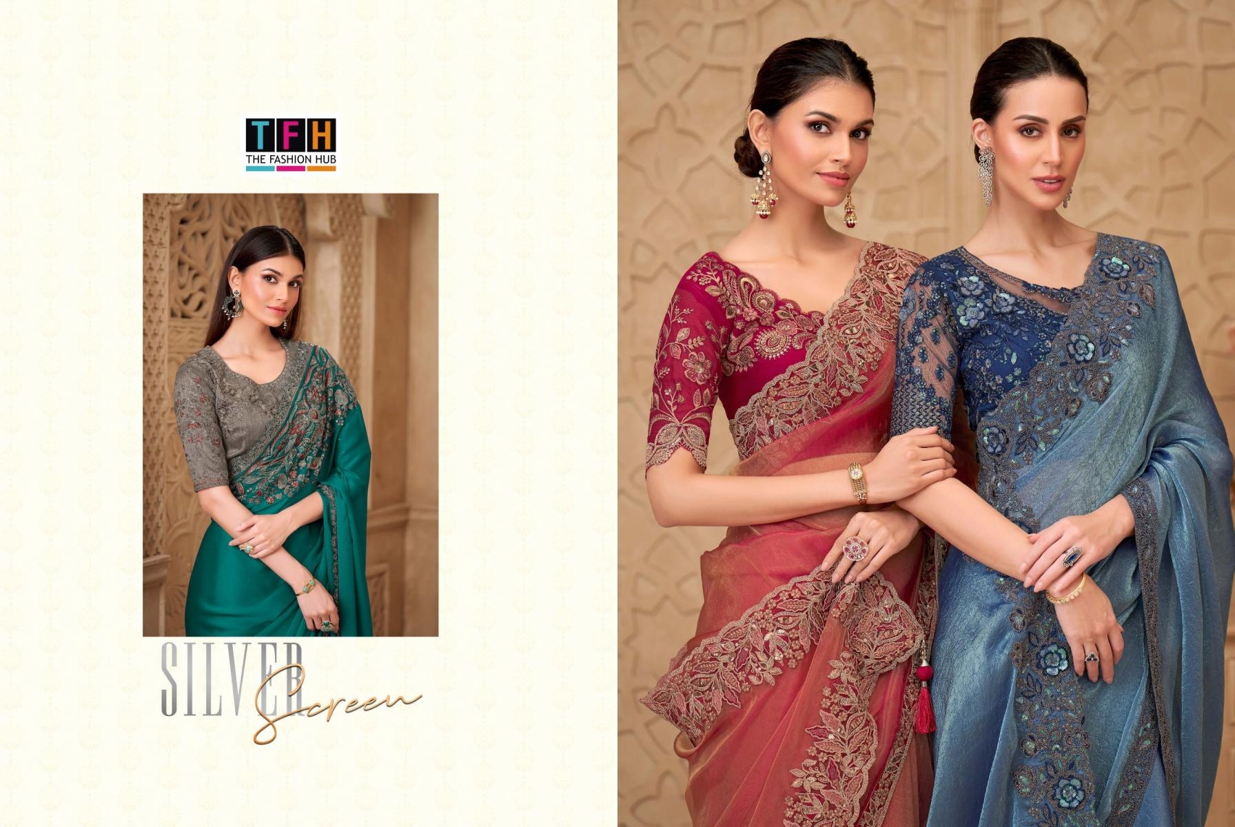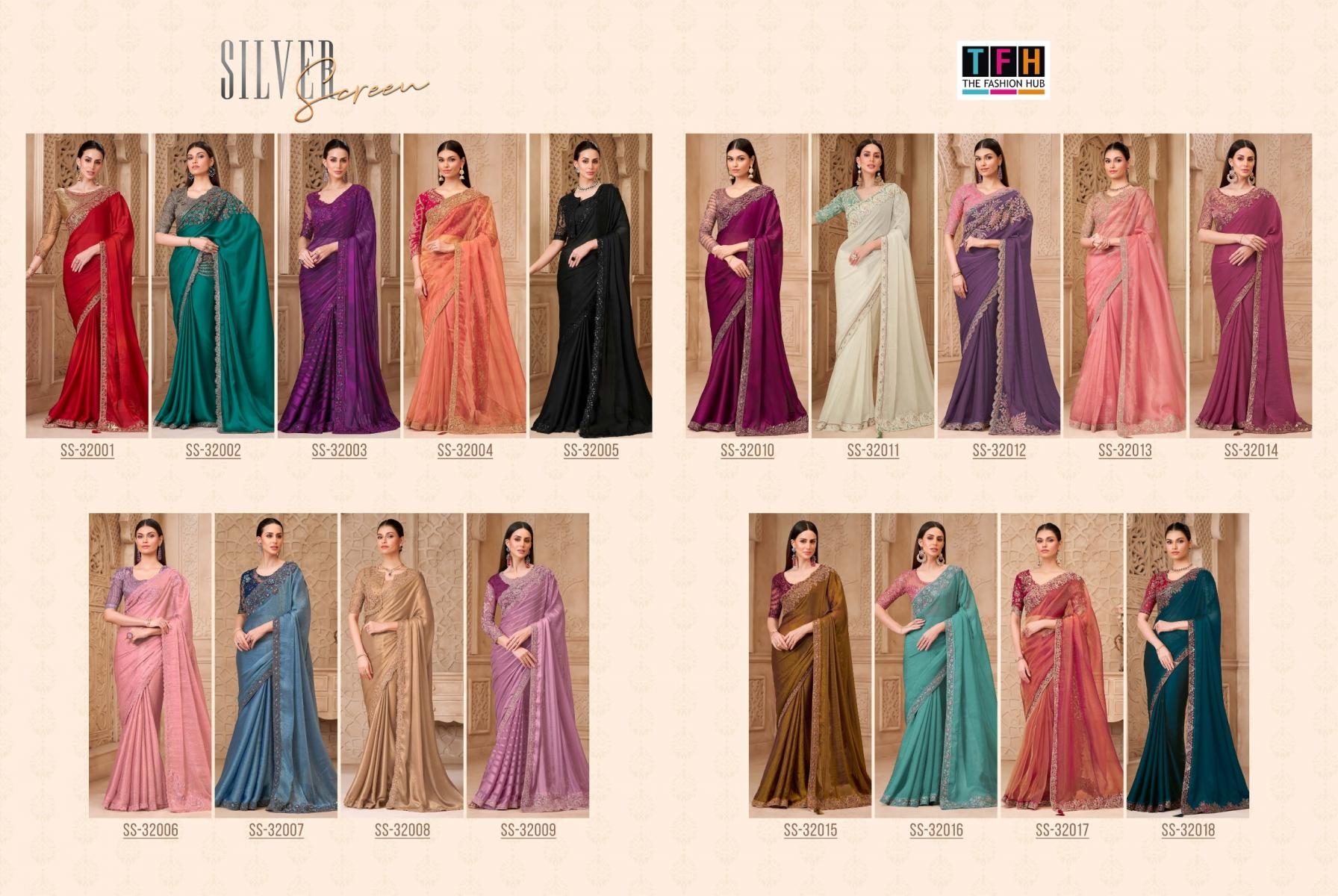 buy tfh silver screen vol 22 series 32001 to 32018 sartin georgette traditional sarees in wholesale surat latest catalogue 2025