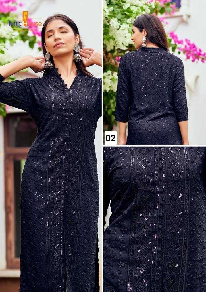buy TUNIC HOUSE CHIKANKARI SEQUENCE WORK KURTI SIZE SET COMBO SET latest catalogue 2025