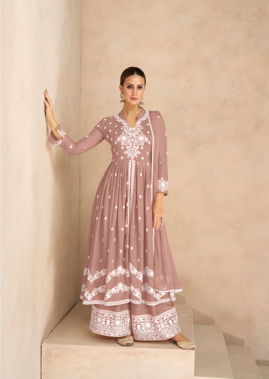 The designer kurta with matching pants and dupatta showcases rich cultural patterns and detailed prints that reflect timeless Indian fashion. Its breathable fabric ensures all-day comfort while the stylish silhouette gives you a trendy yet traditional appearance. Pair it with heels or ethnic footwear to create a perfect festive look.