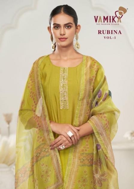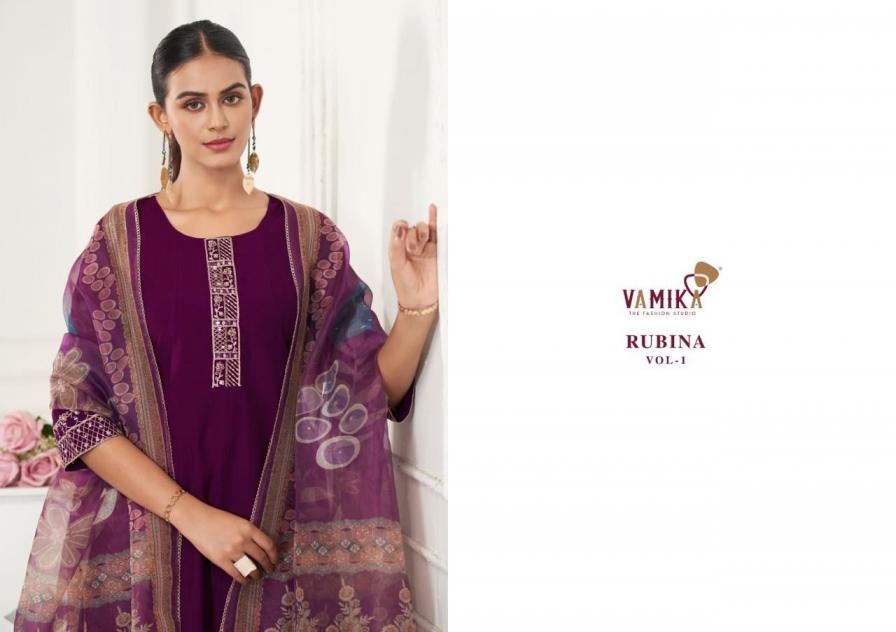 • Full Name : Vamika Rubina Vol 1 Series 602a To 602d Viscose Roman Silk Party Wear Full Stitch Suit In Wholesale Surat