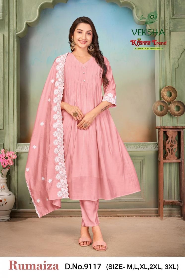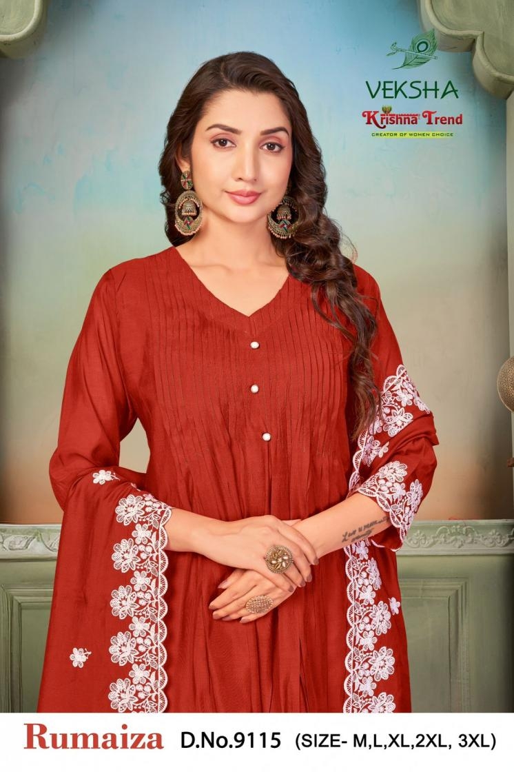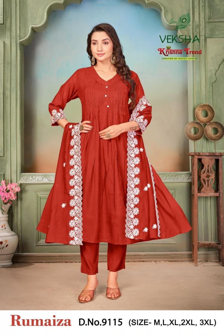 buy veksha krishna trend rumaiza series 9111-9118 mul chanderi readymade suit latest catalogue 2025