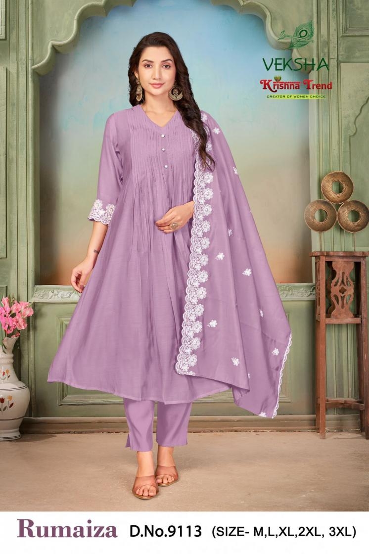 Name : Veksha Krishna Trend Rumaiza Series 9111-9118 Mul Chanderi Readymade Suit