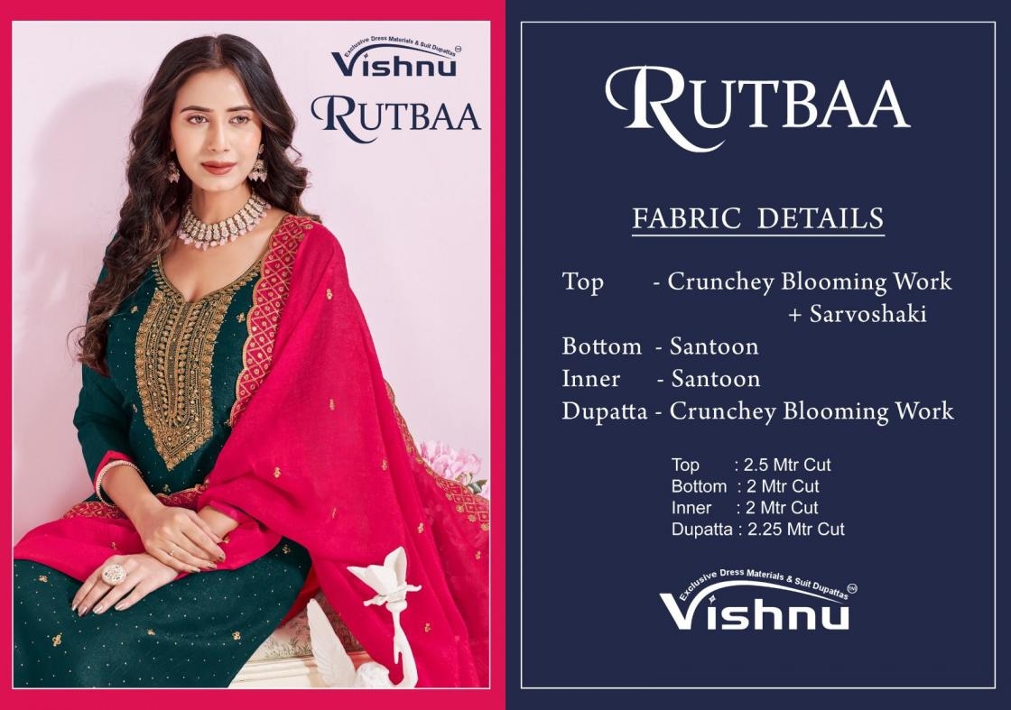 buy vishnu rutbaa series 71001-71010 crunchey blooming wholesale suit in surat latest catalogue 2025