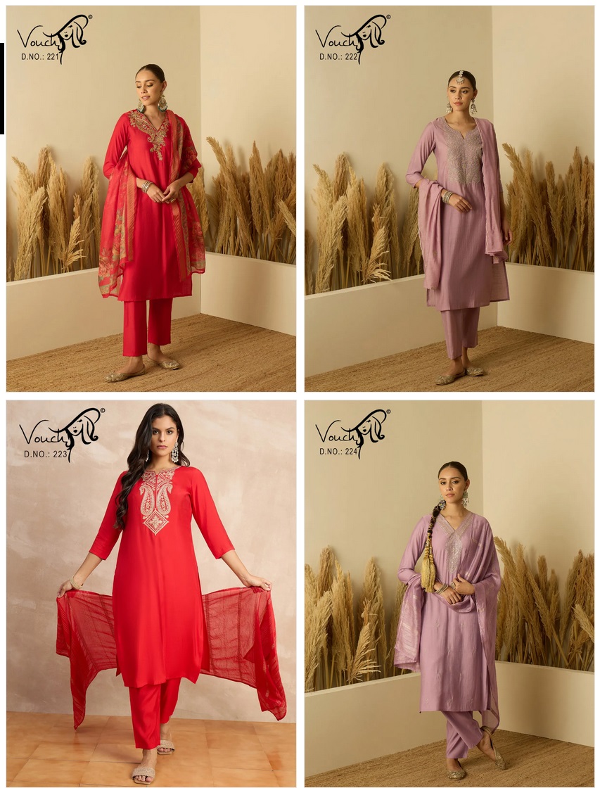 Upgrade your ethnic wardrobe with the elegant Vouch 221 To 224 Roman Silk Embroidery Kurti Bottom With Dupatta for Women, a perfect blend of traditional craftsmanship and modern style. This beautifully designed printed kurta set with dupatta features vibrant colors, intricate ethnic motifs, and premium-quality fabric that offers both comfort and style. Ideal for festivals, weddings, parties, casual outings, and traditional occasions, this stunning outfit enhances your graceful look effortlessly.