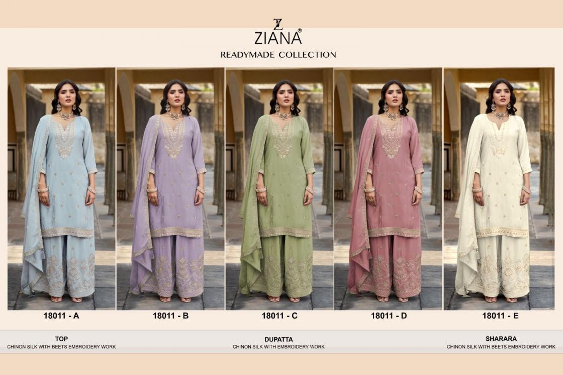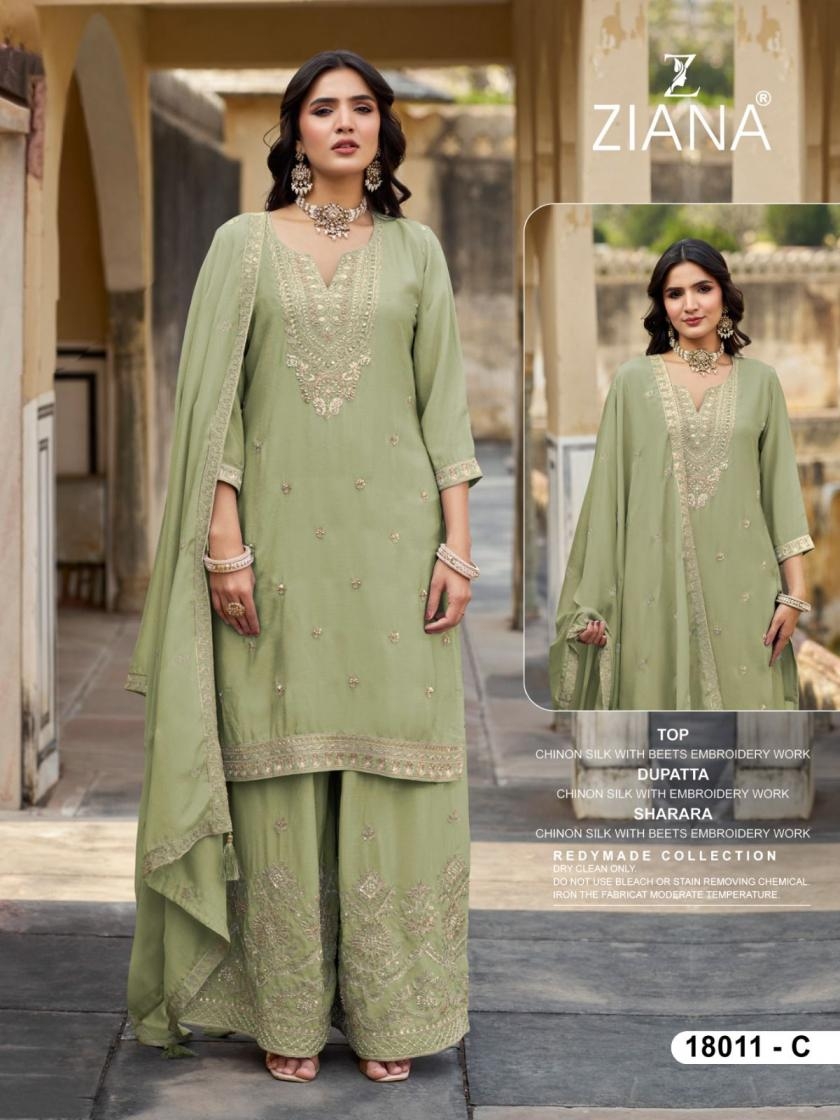 Name : Ziana 18011 Fashionable Chinon Silk Sharara Kurti With Dupatta