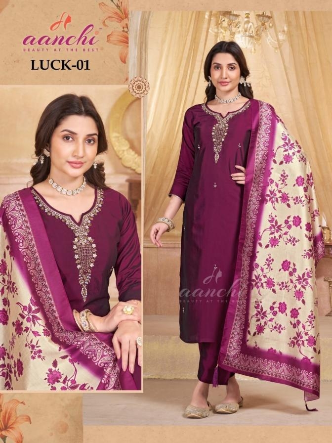 | Name : | Aanchi Luck 1& 2 Fully Stitch Rangeela Silk Combo Set Suit In Wholesale Surat | |