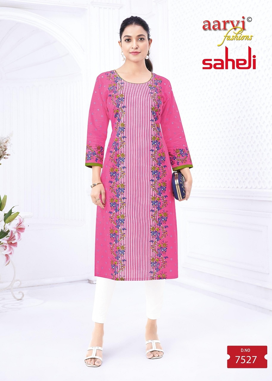 buy Aarvi Saheli Vol-17 series 7517 ton7540 Heavy Cambric Cotton Printed Straight Kurtis in wholeslae surat latest catalogue 2025