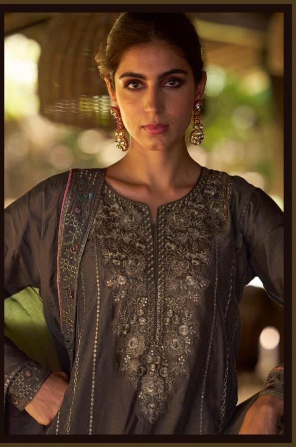 • Partywear salwar suits with sequins and Zari