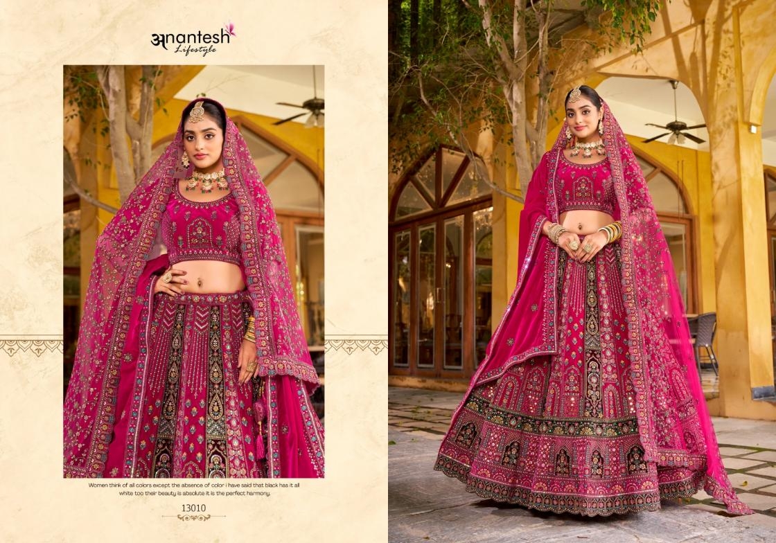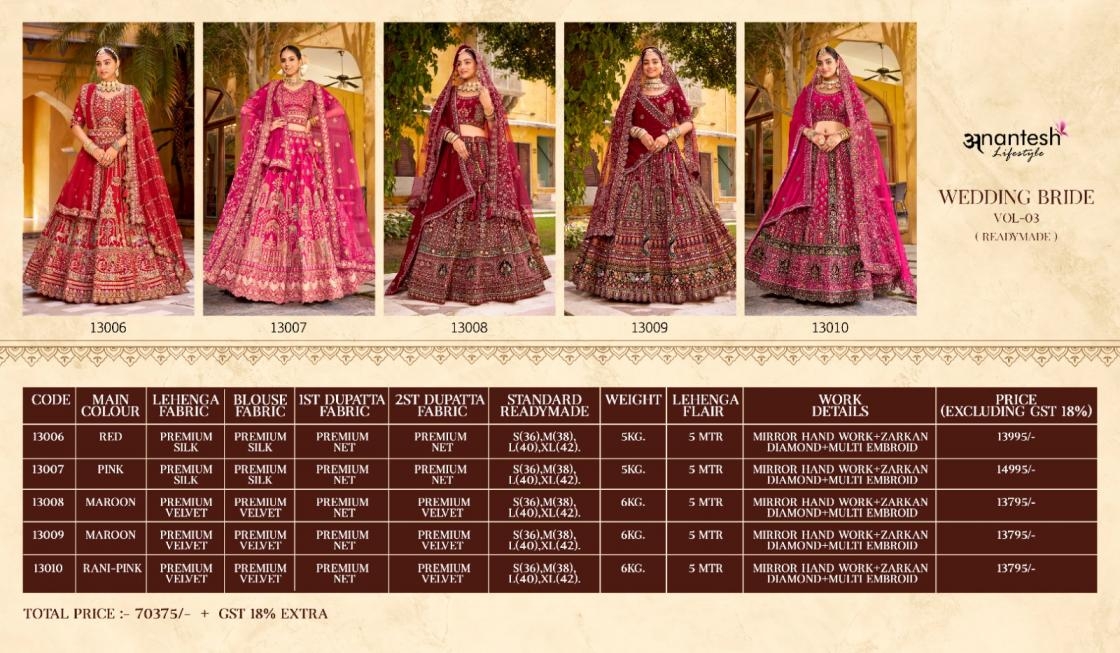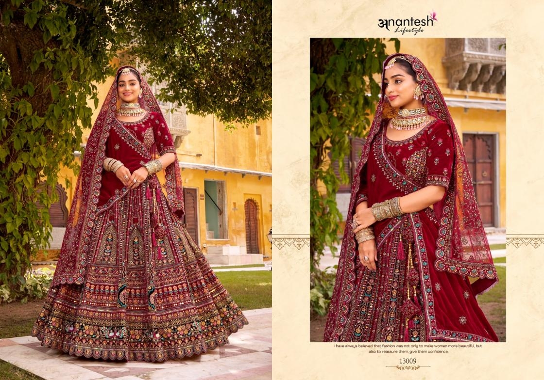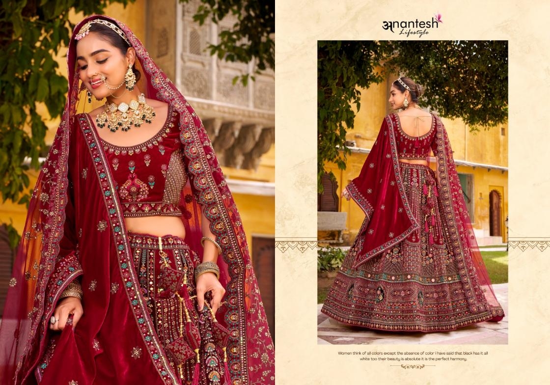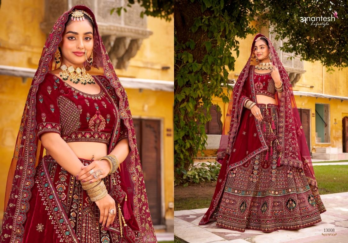 • Full Name : Anantesh Lifestyle Wedding Bride Vol 3 Series 13006 To 13010 Semi Stitch Silk Velvet Lehenga In Wholesale Surat
