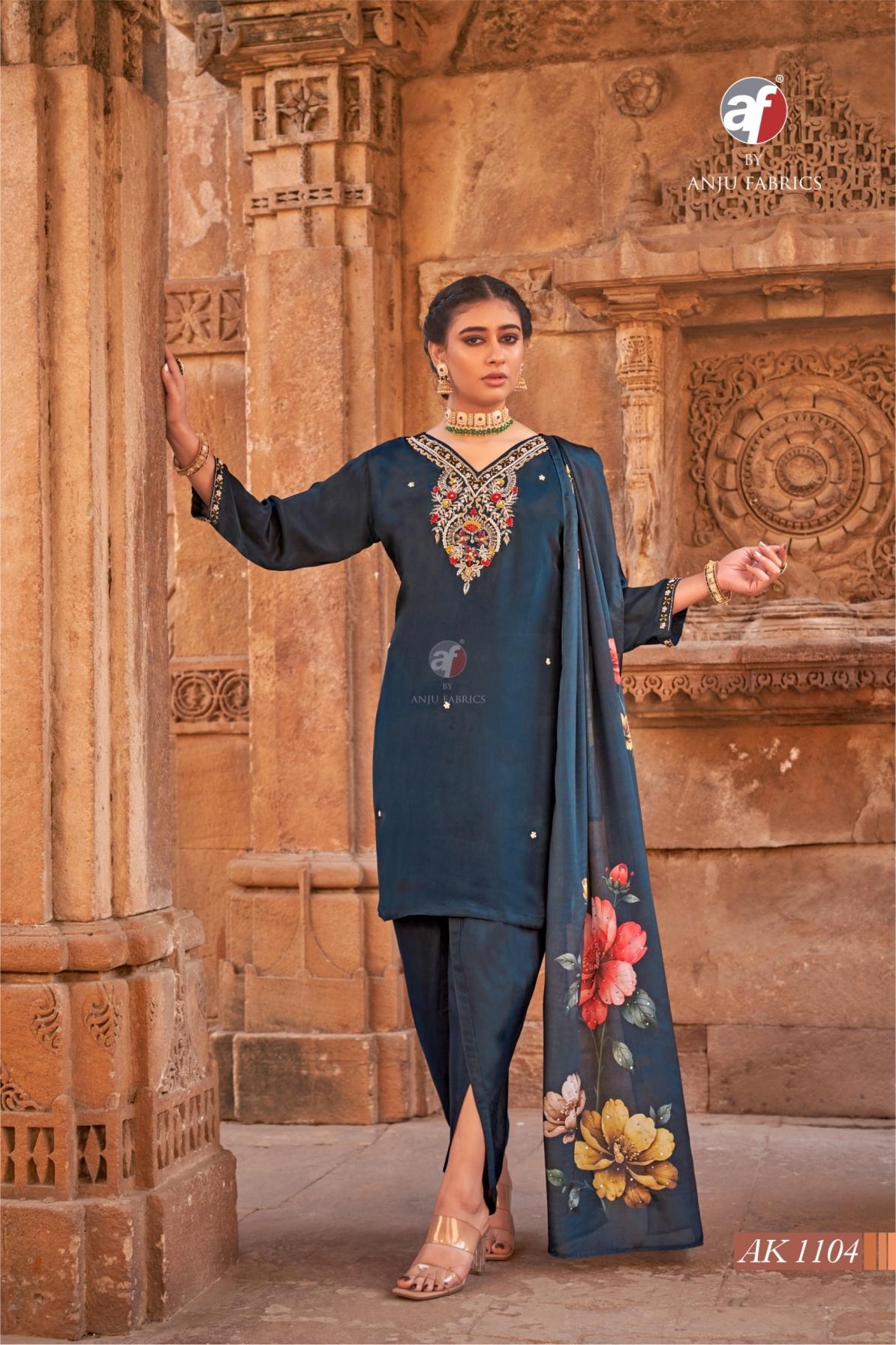 buy anju fab ak 1104 natural crepe readymade attractive tulip pant style combo suit in wholesale surat latest catalogue 2025