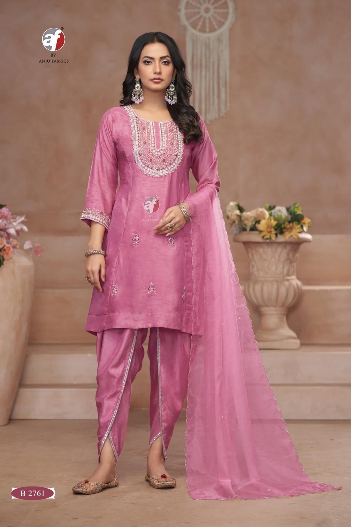 buy anju fab b series 2760-2761 readymade dola silk combo short anarkali tulip pant with dupatta in wholeslae surat latest catalogue 2025