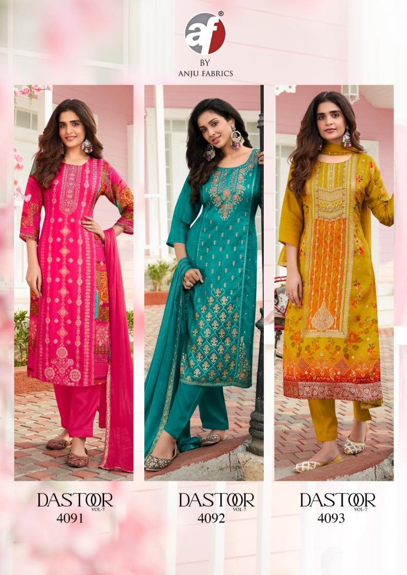 buy anju fab dastoor vol 7 series 4091 to 4095 dola jacquard readymade occasion wear suit in wholesale surat latest catalogue 2025