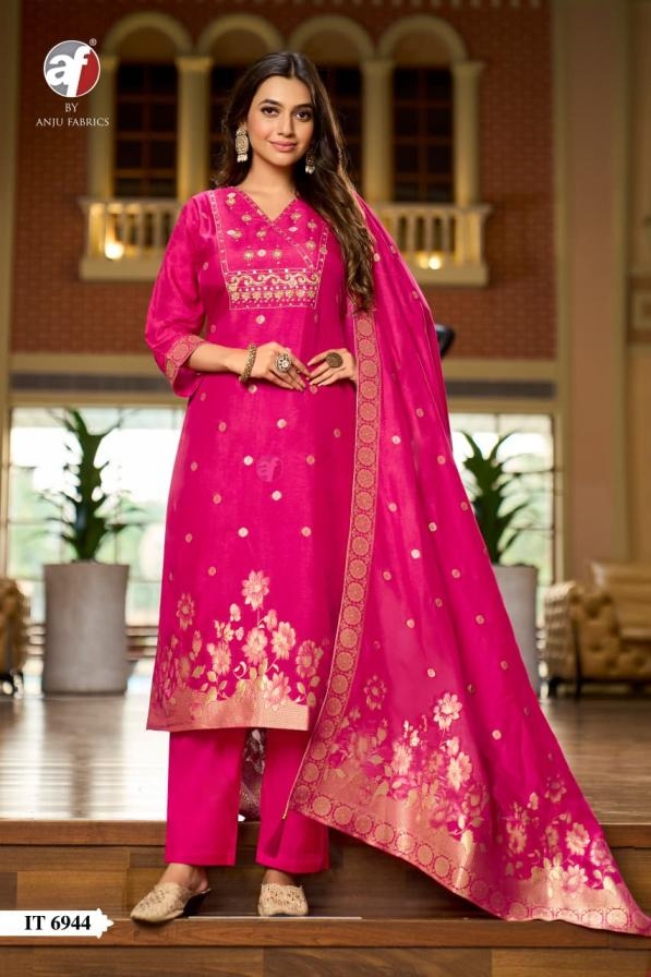 anju fab it 6944 stylish dola silk with jacquard readymade combo set suit in wholesale surat Buy New Latest Catalogue 2025 anju fab it 6944 stylish dola silk with jacquard readymade combo set suit in wholesale surat. Available in Singles and Bulk at Laiq Boutique. Buy at Wholesale price at very reasonable rate. Specification :