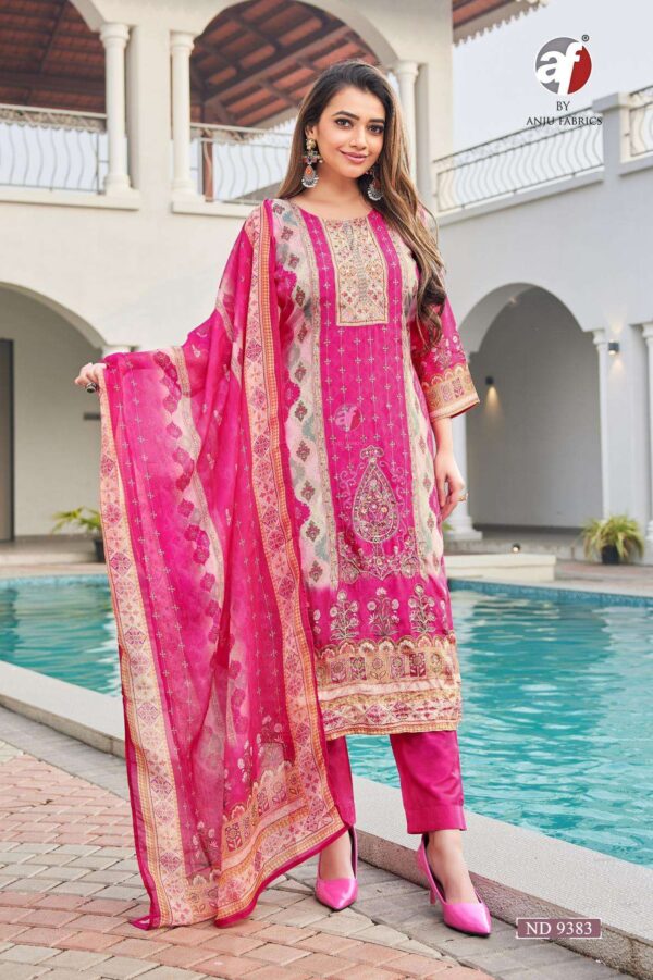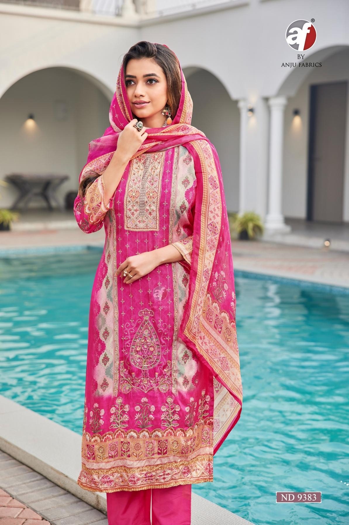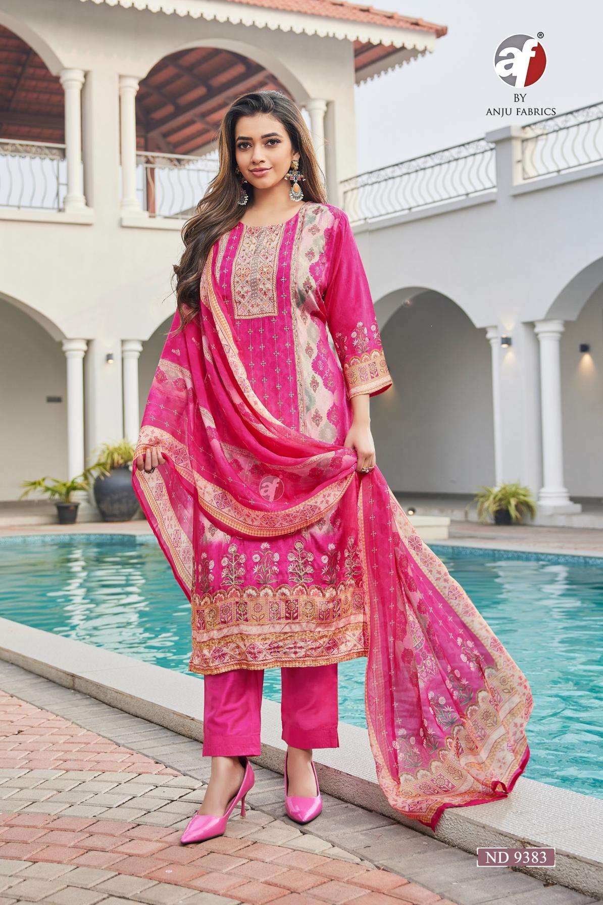 buy anju fab nd 9383 viscose silk readymade stylish combo suit in wholesale surat latest catalogue 2025