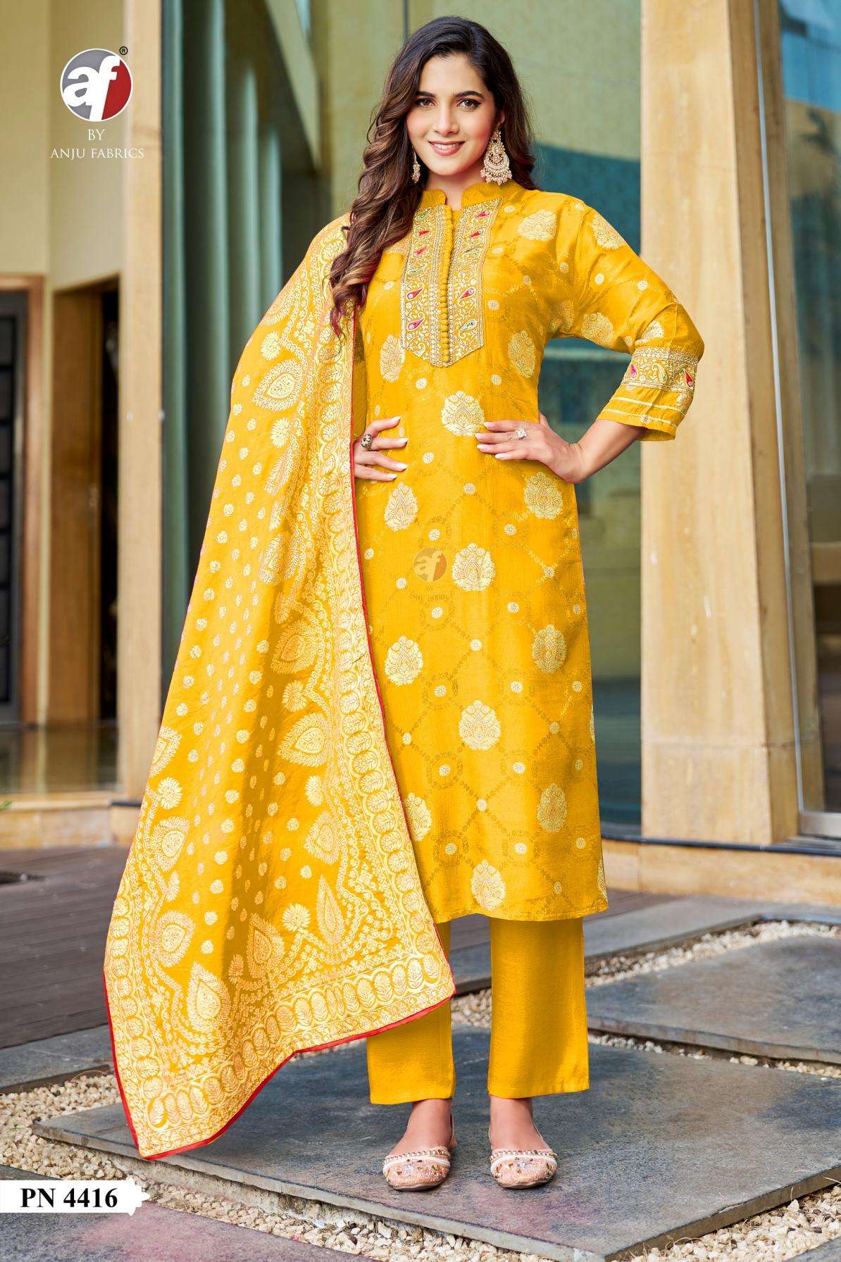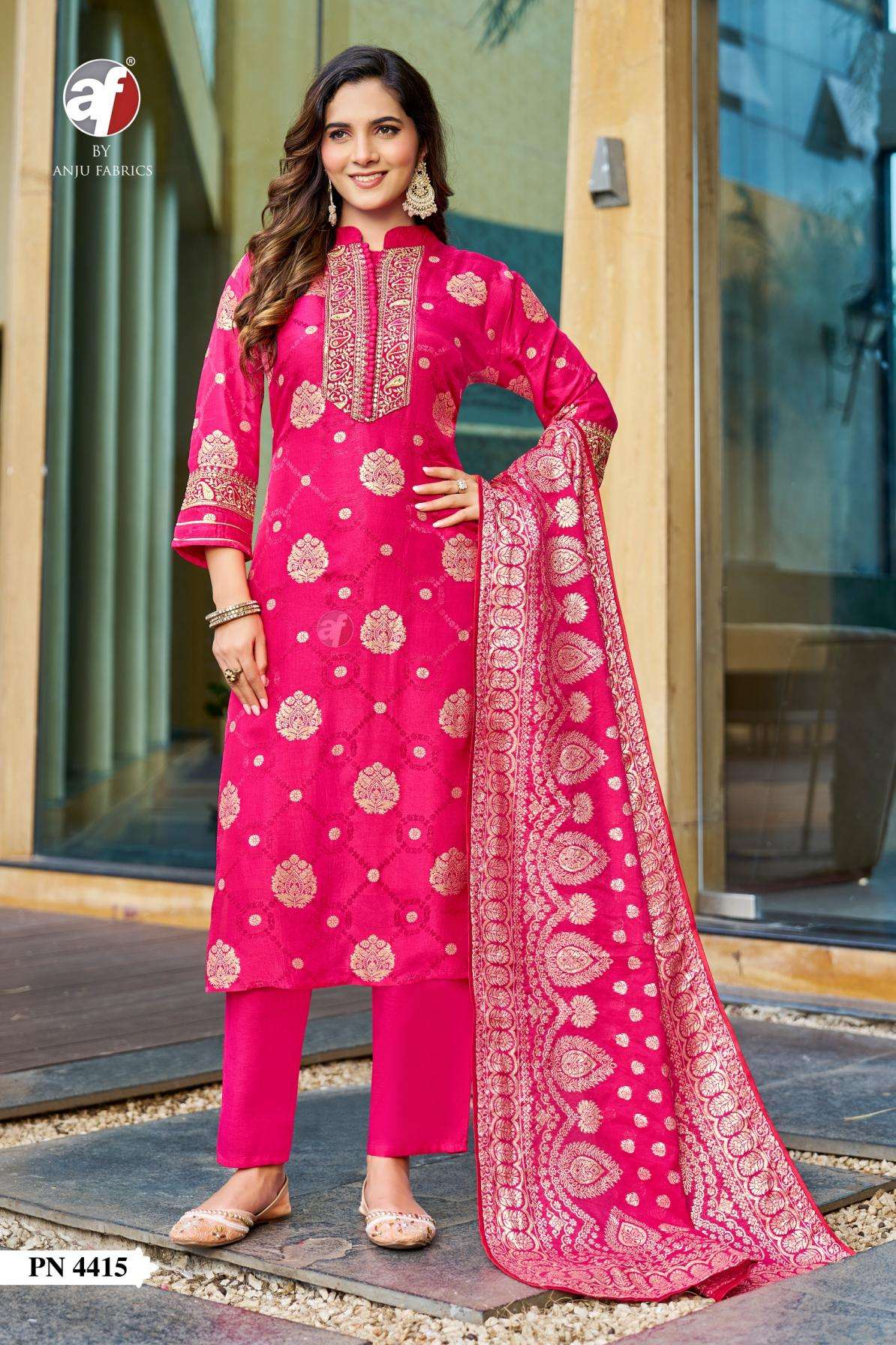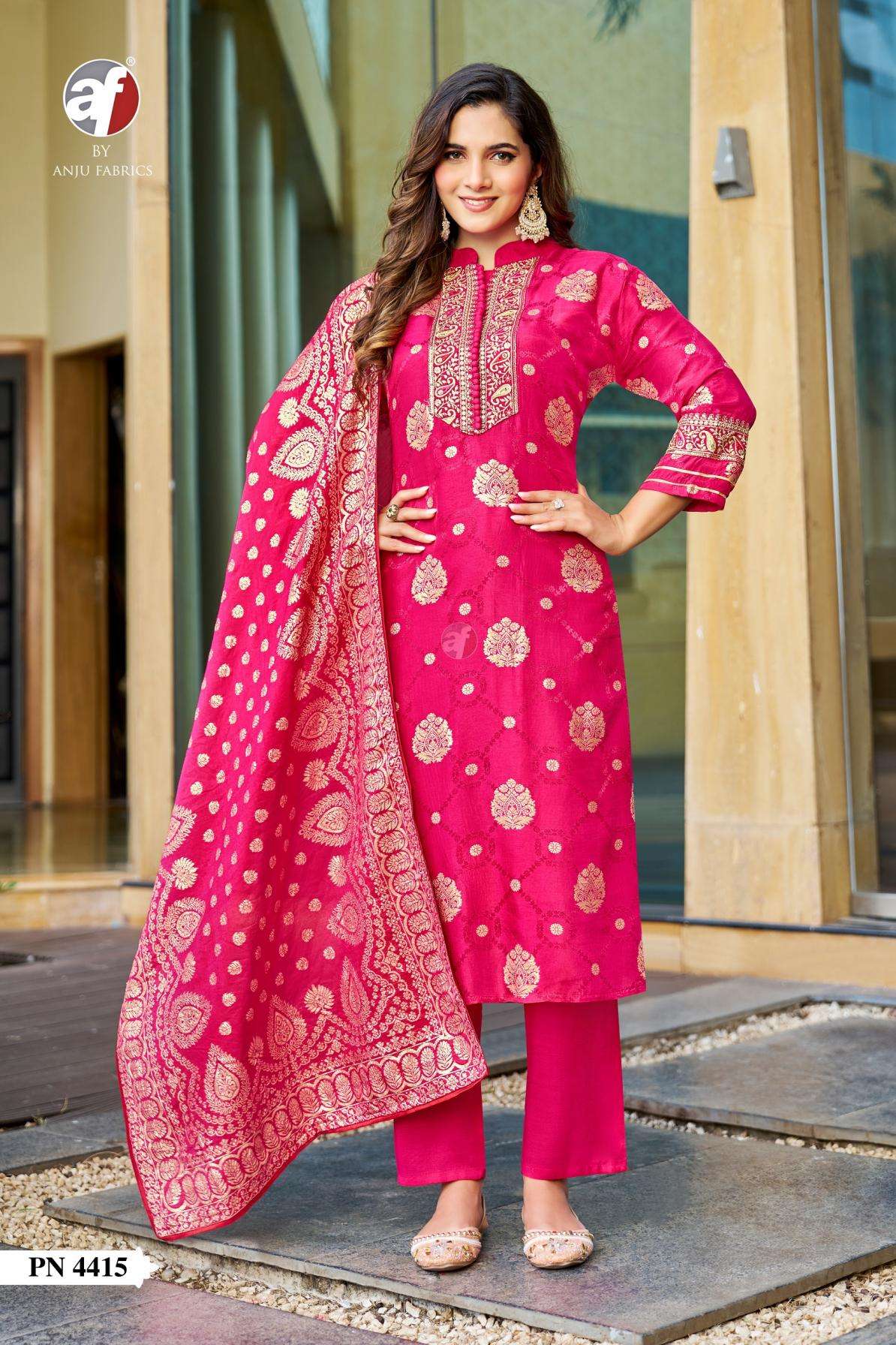 anju fab pn series 4415-4416 russian silk combo set readymade party wear suits in wholesale surat