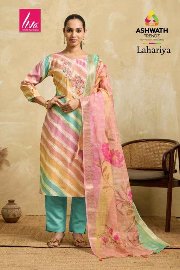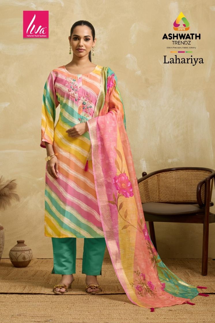 buy ashwath trendz lahariya readymade classic saffron silk suit in wholesale surat latest catalogue 2025