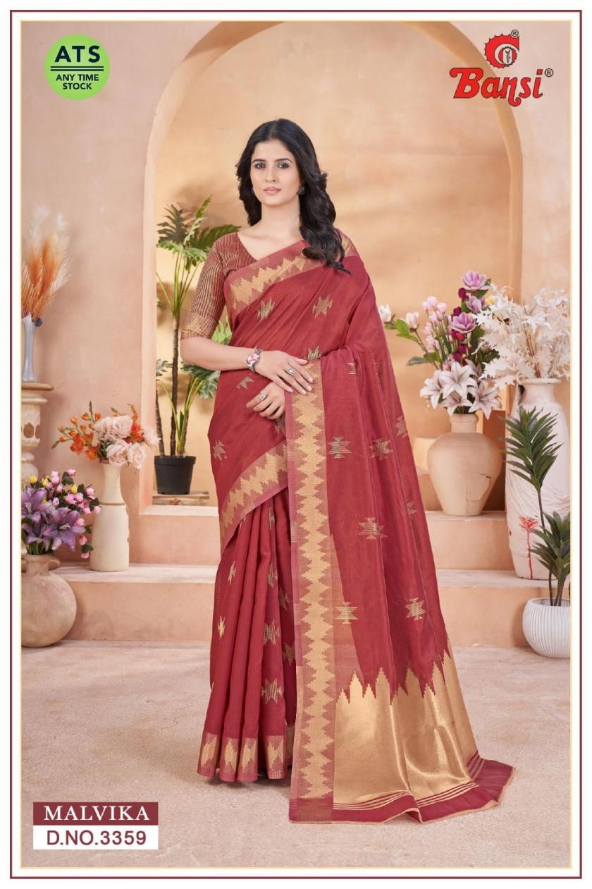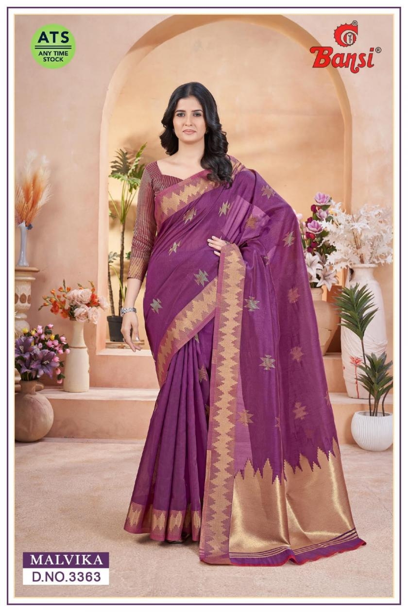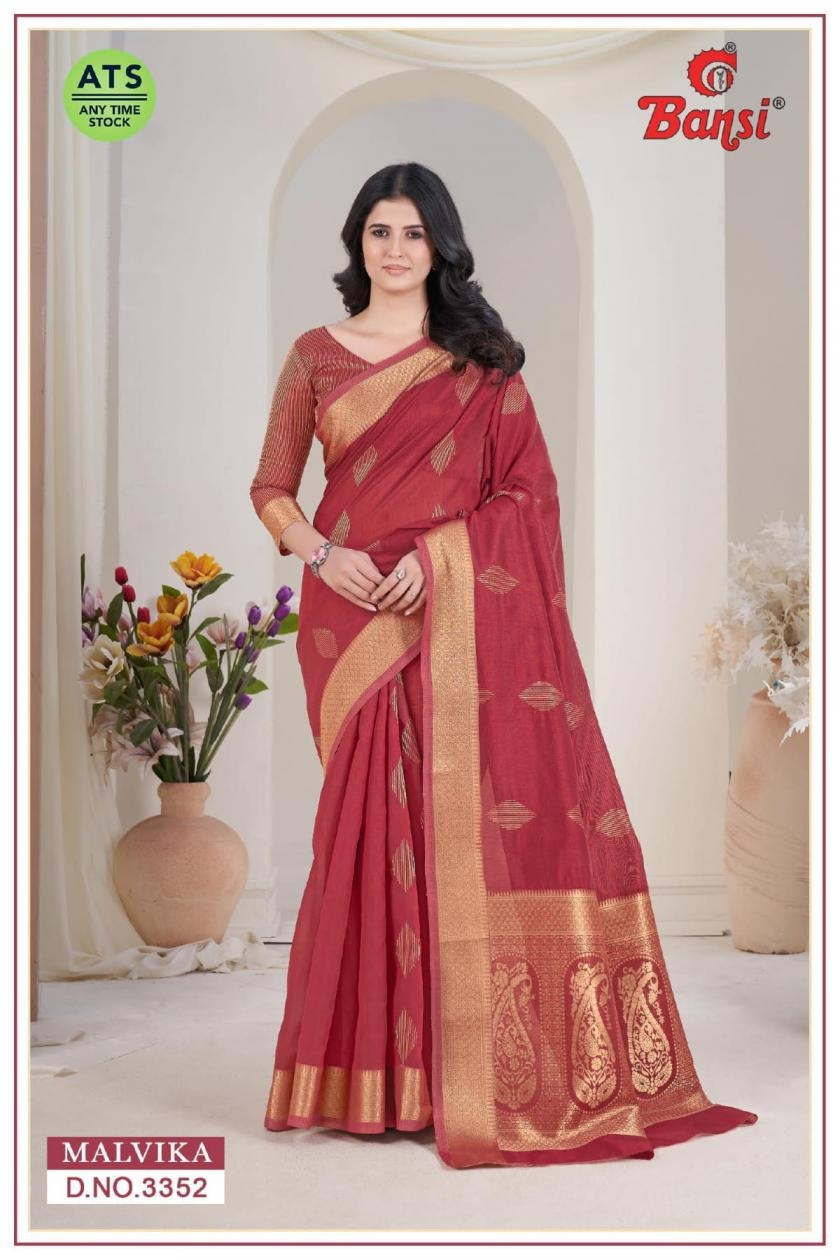 • Full Name : Bansi Malvika Series 3351 To 3364 Unique Weaving Buta Jari Cotton Silk Uniform Saree In Wholesale Surat