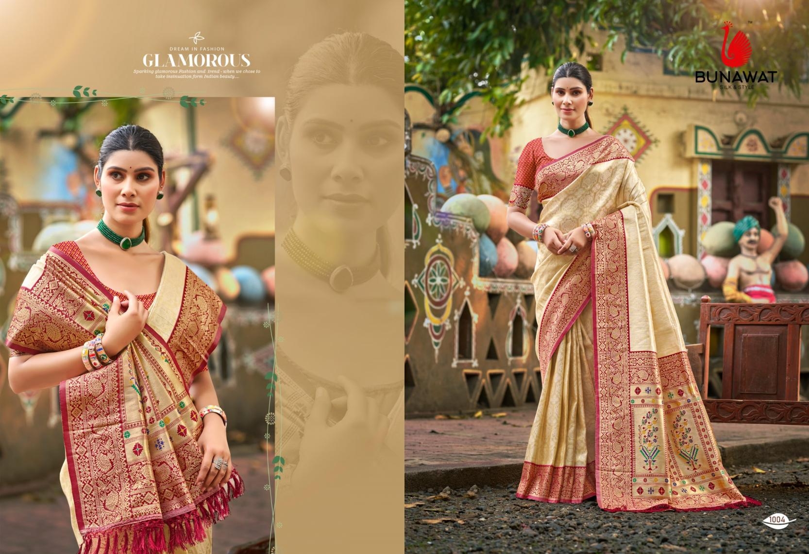 buy Bunawat Devyani SIlk-06 series 1001 to 1006 Sangam Prints Kanjivaram Silk Woven Work Traditional Saree in wholesale surat latest catalogue 2025