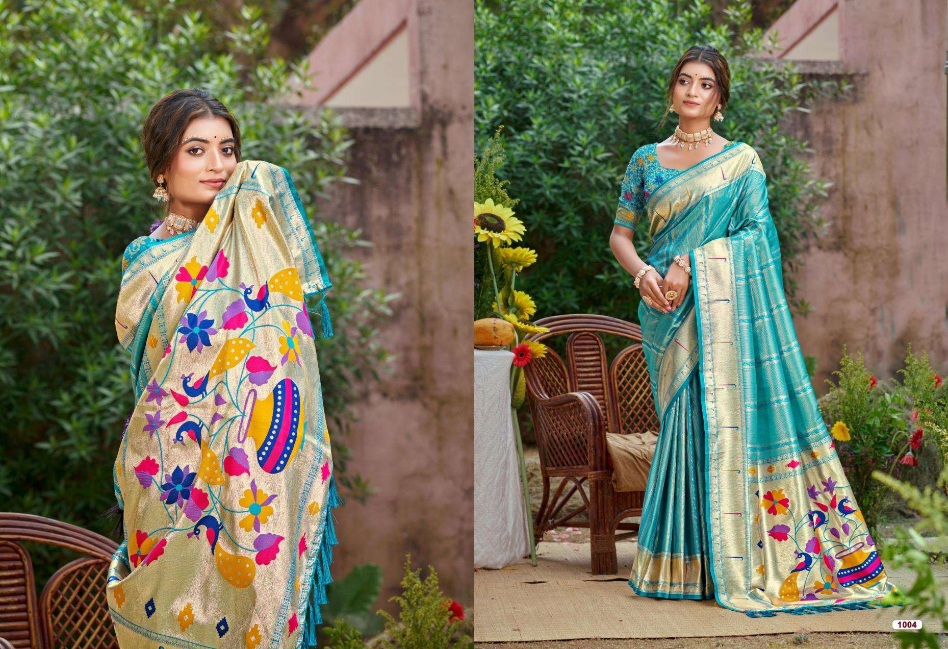 buy Bunawat Rithika Silk series 1001 to 1008 Sangam Prints Silk Woven Work Traditional Saree in wholesale surat latest catalogue 2025