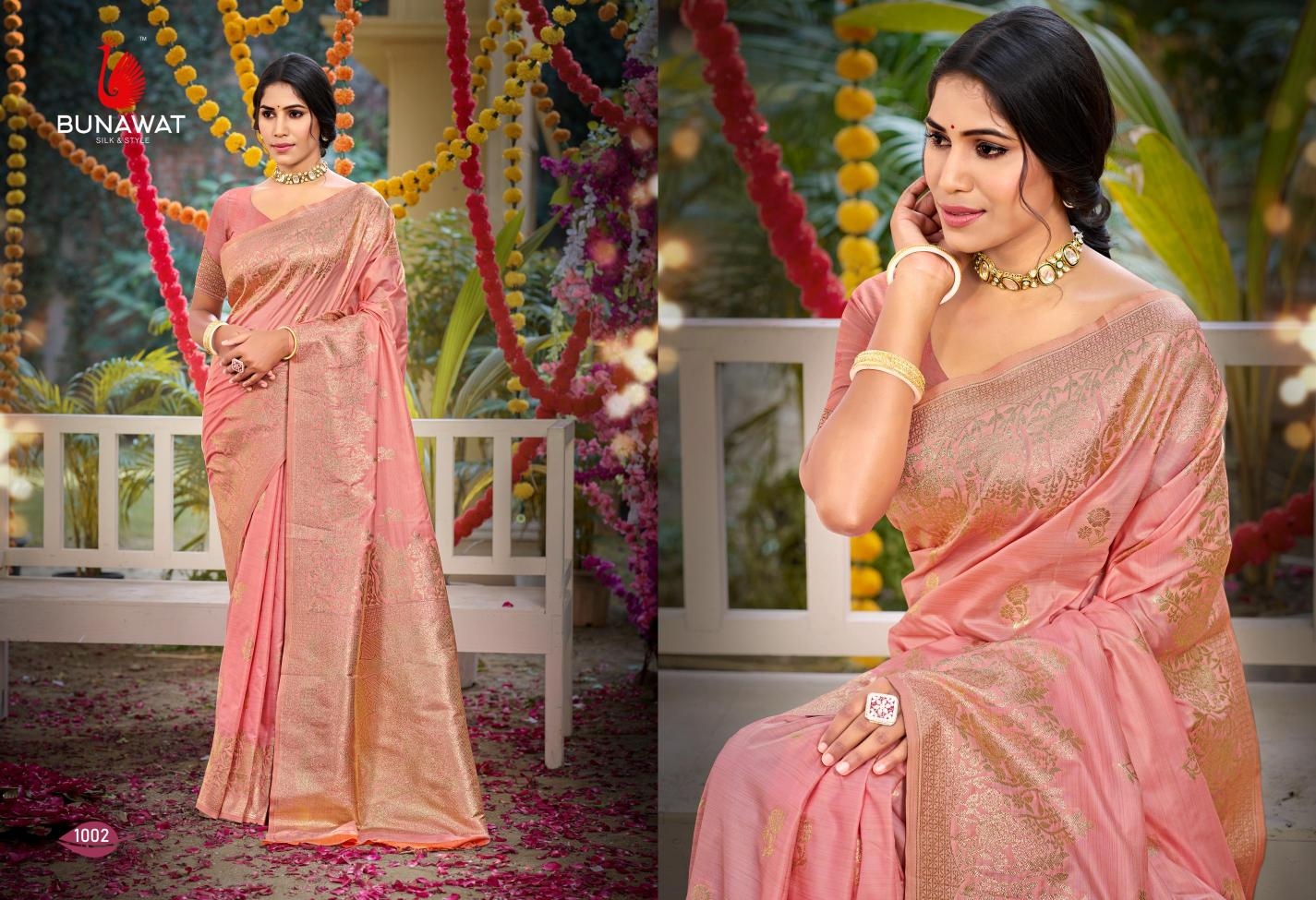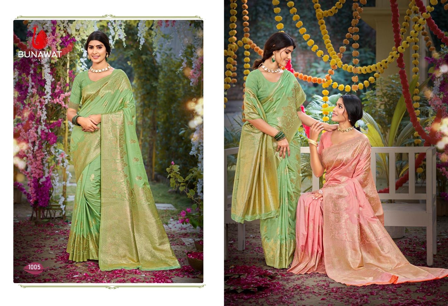 buy Bunawat Silk Niketan series 1001 to 1006 Party Wear Designer Silk Sarees in wholesale surat latest catalogue 2025